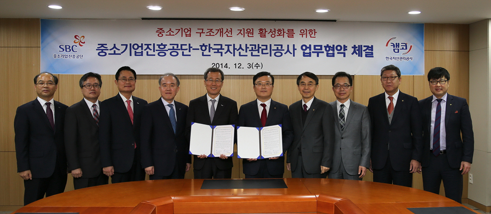 캠코는 12월 3일 서울 강남구 역삼동 소재 캠코 서울지역본부에서 중소기업진흥공단과「중소기업 구조개선 지원 활성화를 위한 업무협약」을 체결했습니다.