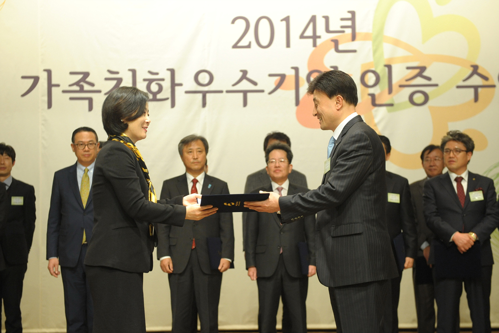 캠코는 12월 19일 서울 중구 대한상공회의소에서 여성가족부로부터「2014년 가족친화기업 인증」여성가족부장관 표창을 수상했습니다.