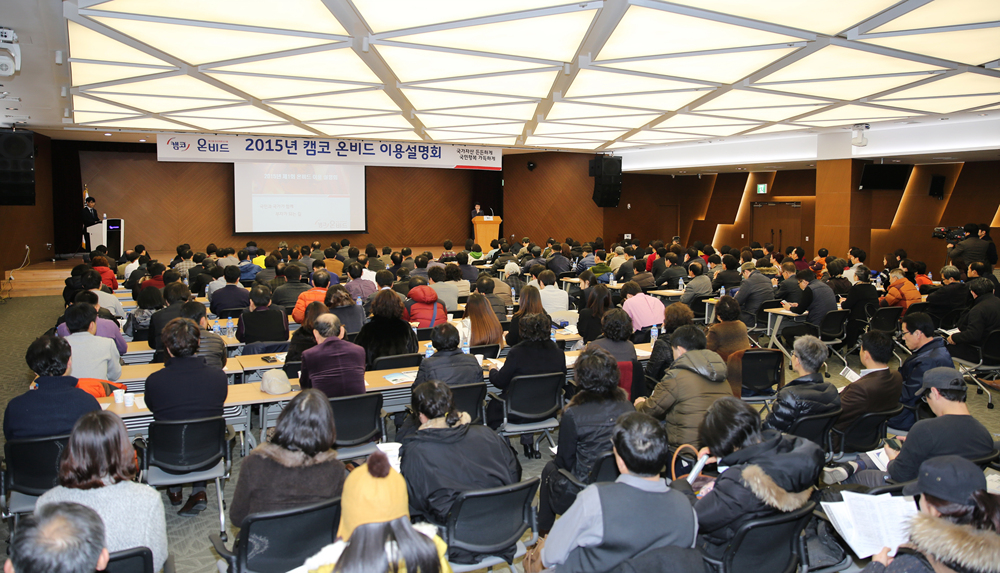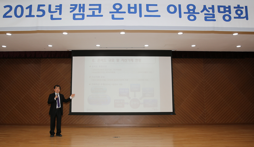 캠코는 2월 12일(목) 2시 부산국제금융센터(BIFC) 3층 다목적홀에서 ‘2015년 제1회 온비드 이용 설명회’를 개최했습니다. 온비드(www.onbid. co.kr)는 1만4천여 공공기관 보유자산과 압류재산, 국유재산 등의 공매를 진행하는 온라인 공매시스템입니다.
