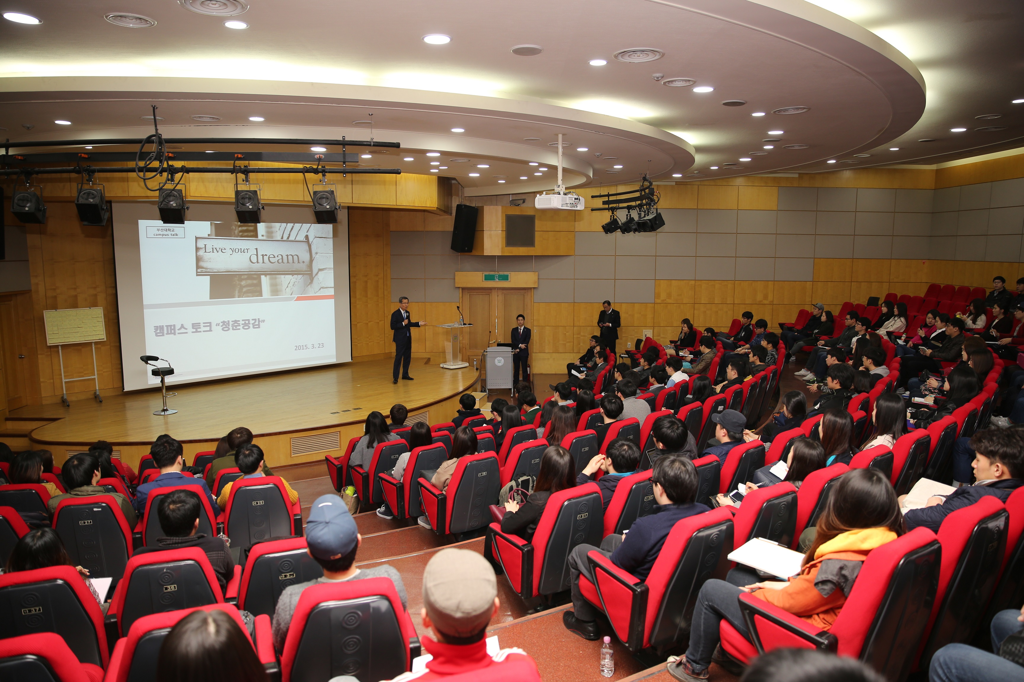 캠코(한국자산관리공사)는 3월 23일 부산대학교에서 약 200여명의 재학생을 대상으로 토크콘서트 '청춘공감'을 개최하였습니다. 홍영만 사장은 '청년의 삶과 꿈'이라는 주제로, 금융공공기관장이자 인생선배로서 행복한 삶과 직장선택을 위한 주요한 가치 등에 관해 강연하였으며 대학생들의 고민에 대해 대화를 나누었습니다.
