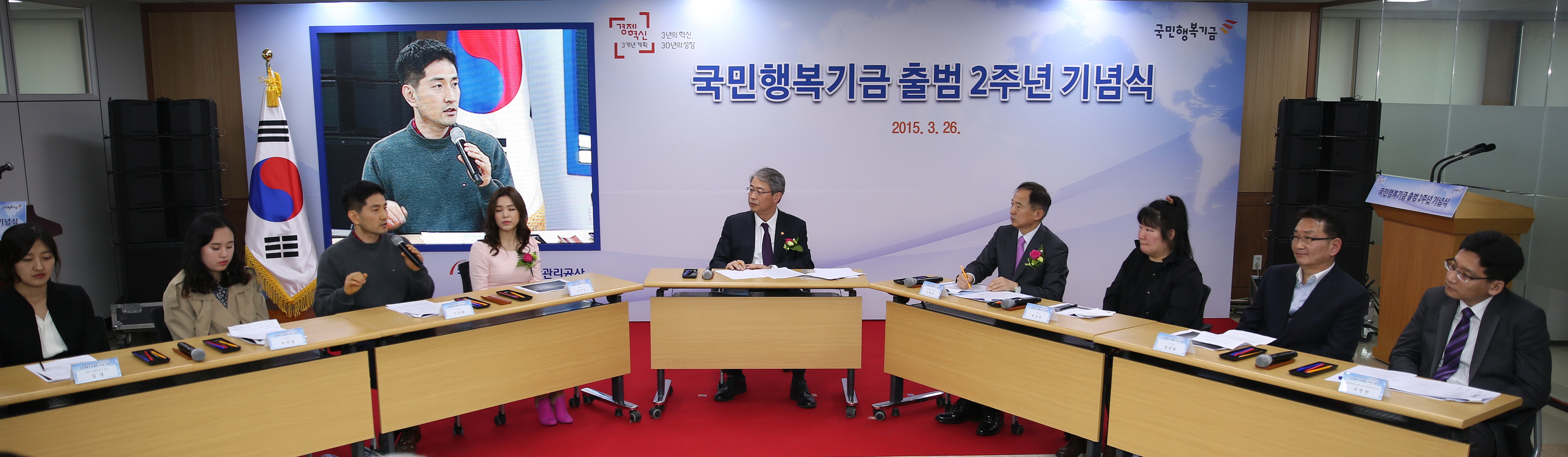 2015년 3월 26일 목요일 오전 9시, 한국자산관리공사 서울지역본부 3층 강당에서 국민행복기금 출범 2주년 기념식이 개최되었습니다. 국민행복기금 2주년 행사는 지난 2년간 국민행복기금의 성과를 점검하고 또 국민행복기금을 통해 성공적으로 재기한 수혜자의 사례를 공유하기 위해 마련되었습니다.