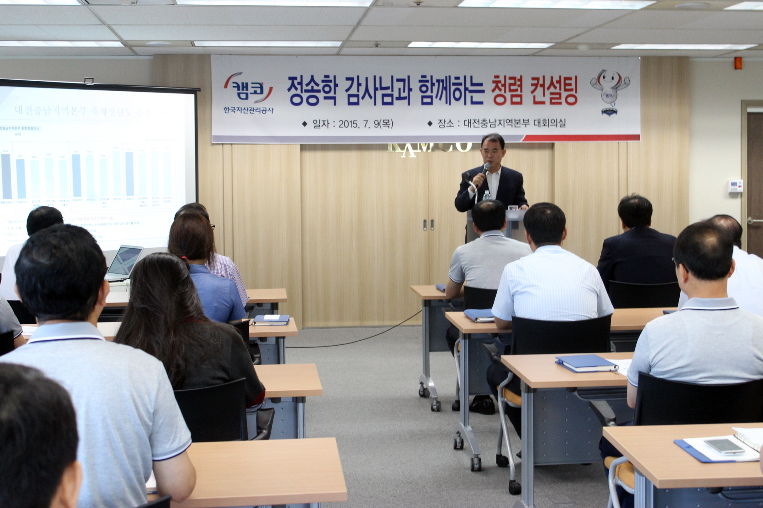 이번 컨설팅은 정송학 상임감사를 비롯, 캠코 청렴리더들이 중심이 되어 지역본부 직원들과 함께 청렴 실천의지를 다지고, 부패취약분야에 대한 다양한 사례공유로 자율적 예방노력을 한층 강화하기 위해 추진되었습니다. |