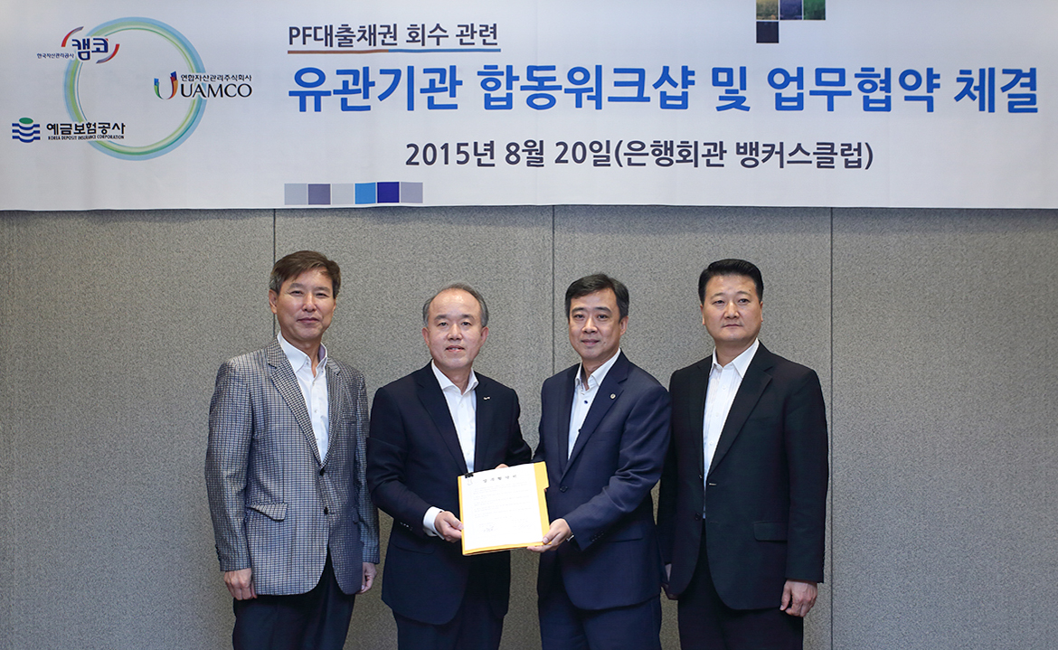 캠코(한국자산관리공사)는 예금보험공사, 유암코와 8월 20일(목) 전국은행연합회관 16층 뱅커스클럽에서 민간-공공 합동 워크숍을 개최하였습니다. 번 워크숍은 부실채권회수 우수사례 공유를 통한 업무역량의 강화 및 유관기관 협조체계 구축을 위해 각 기관의 PF채권 회수 담당 실무자가 참석하여 발표와 토론을 진행하였습니다.