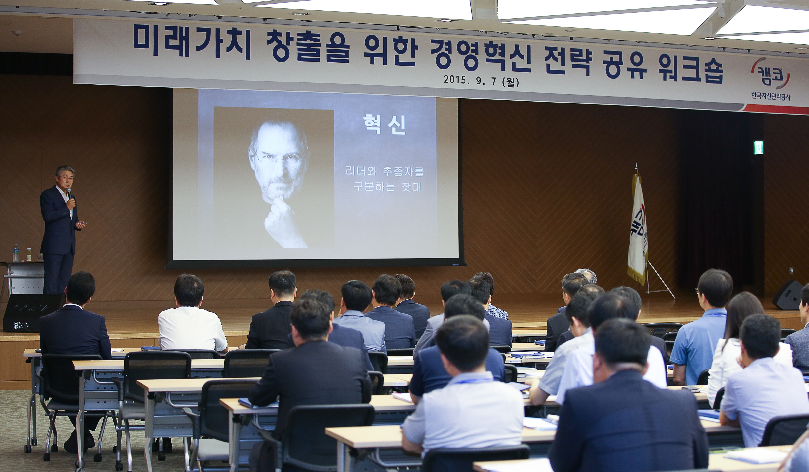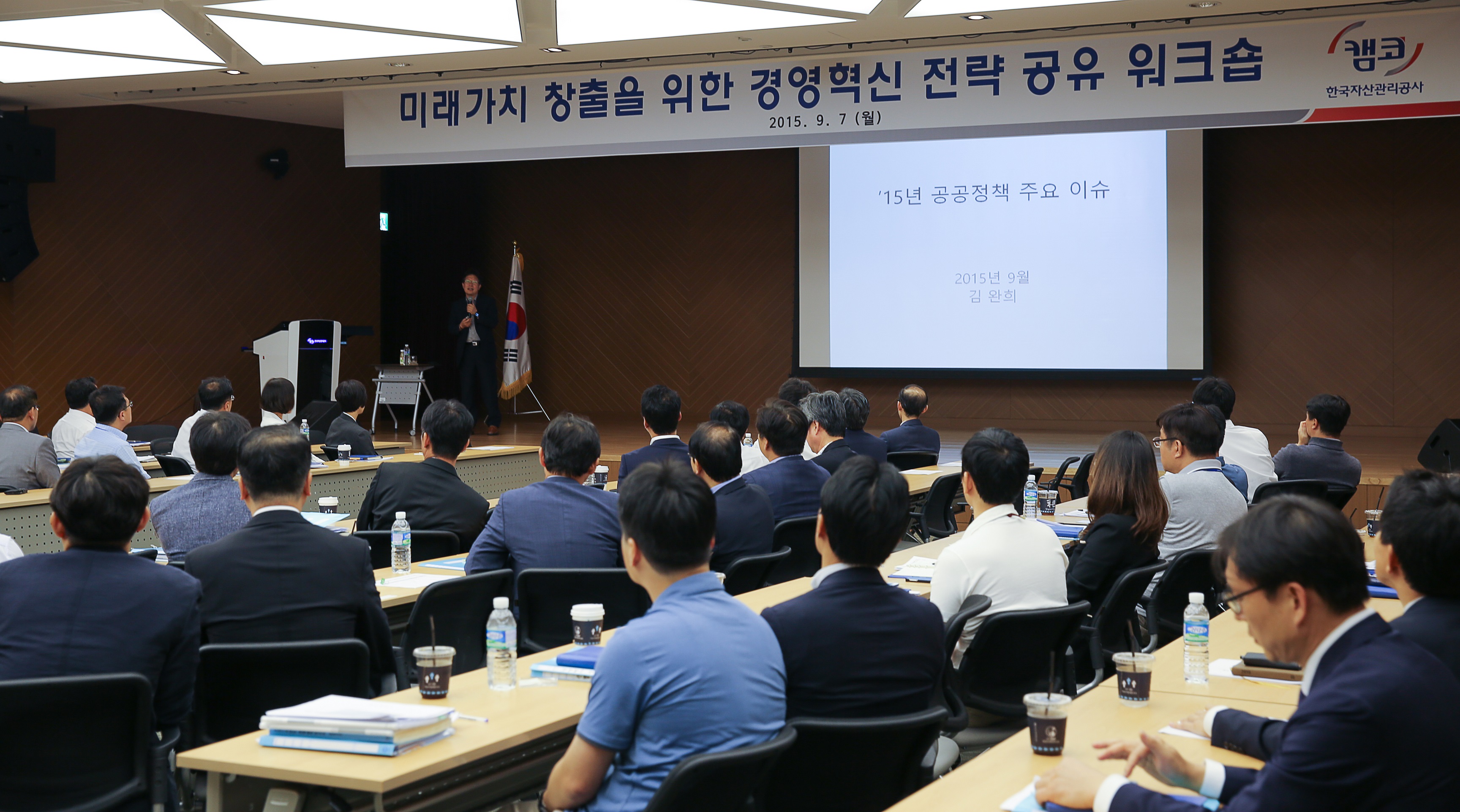 캠코(한국자산관리공사)는 9월 7일(월) 부산국제금융센터(BIFC) 3층 다목적홀에서 임직원 300여명이 참석한 가운데 「2015년 경영혁신 전략 공유 워크숍」을 개최했습니다.
