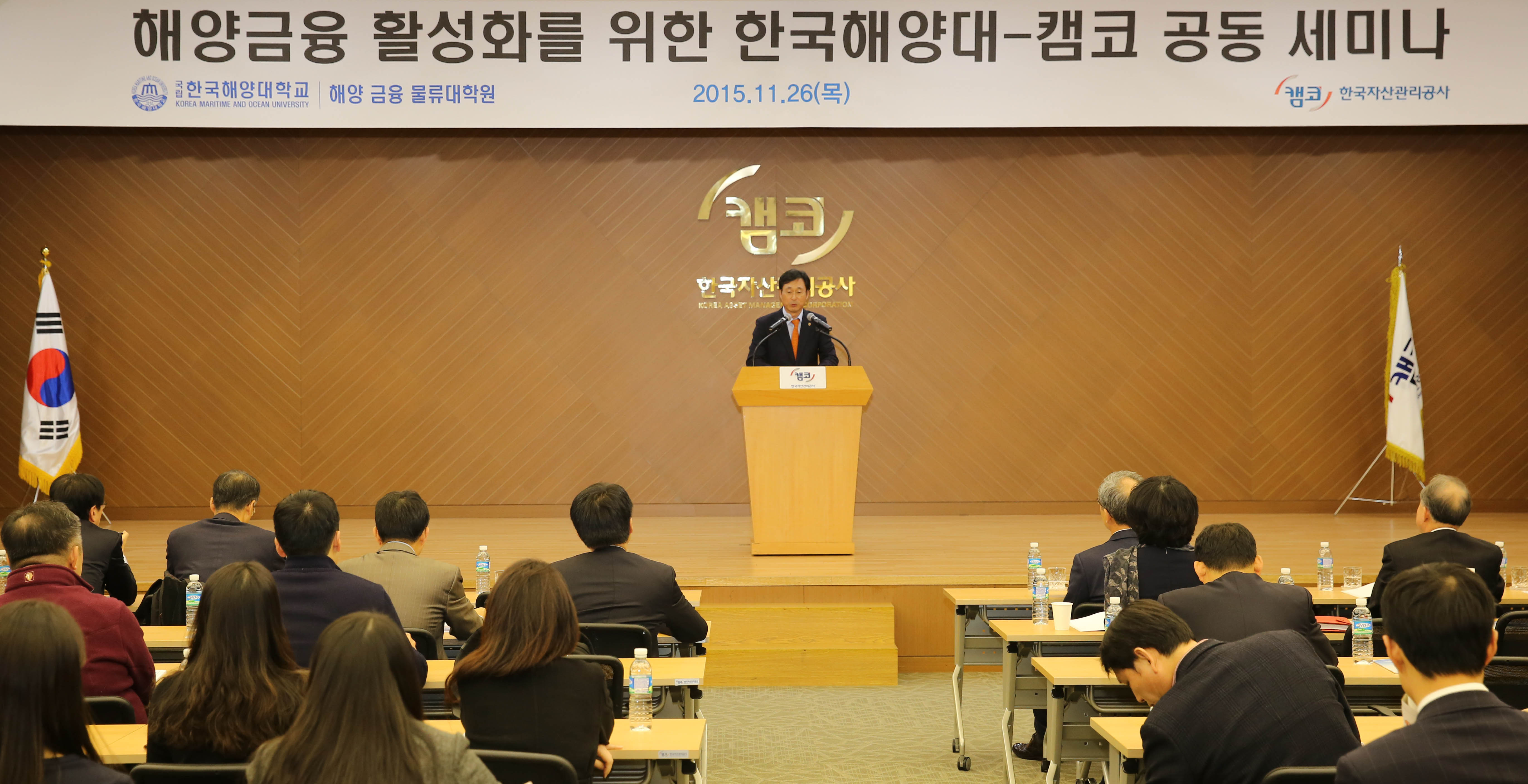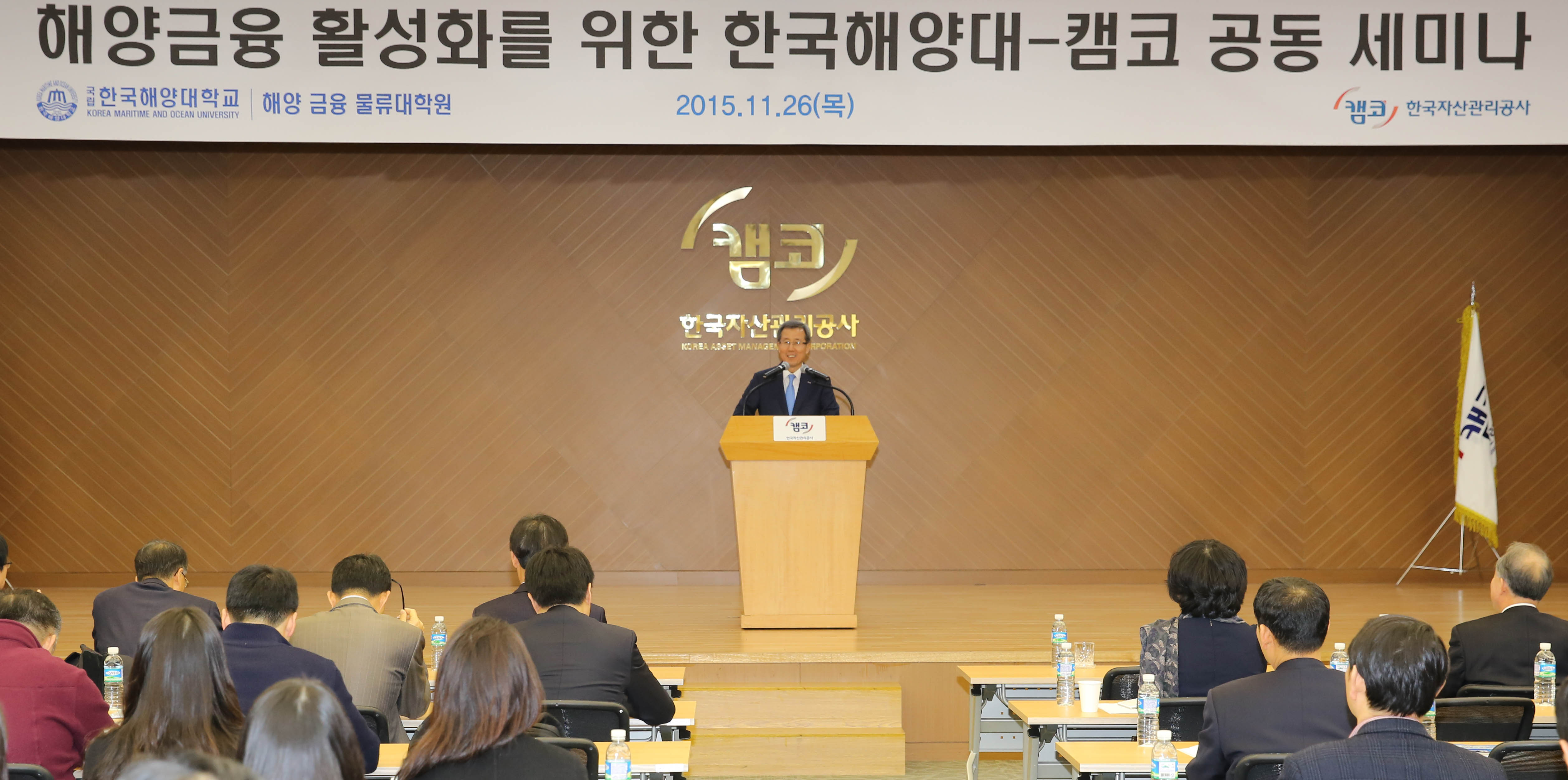 캠코(한국자산관리공사)는 26일(목) 오후 3시 부산국제금융센터 3층 다목적홀에서 한국해양대학교(총장 박한일)와 선박펀드 조성과 해양금융의 활성화 방안을 위한 세미나를 공동 개최했습니다. 한국해양대 재학생 및 졸업생과 해양 학계, 해양금융 종사자 및 언론계 인사가 발표자 및 토론패널로 참여하여 해양금융 활성화 방안에 대해 논의하는 시간을 가졌습니다.