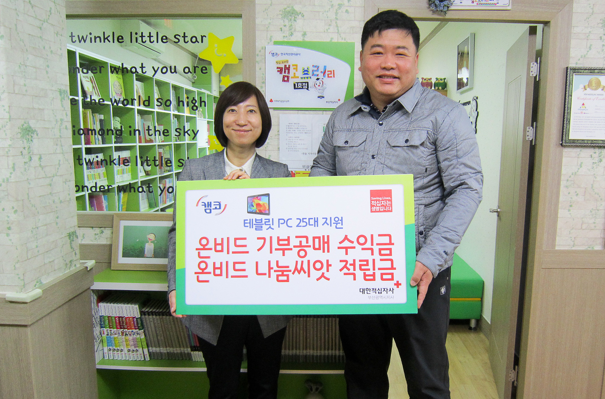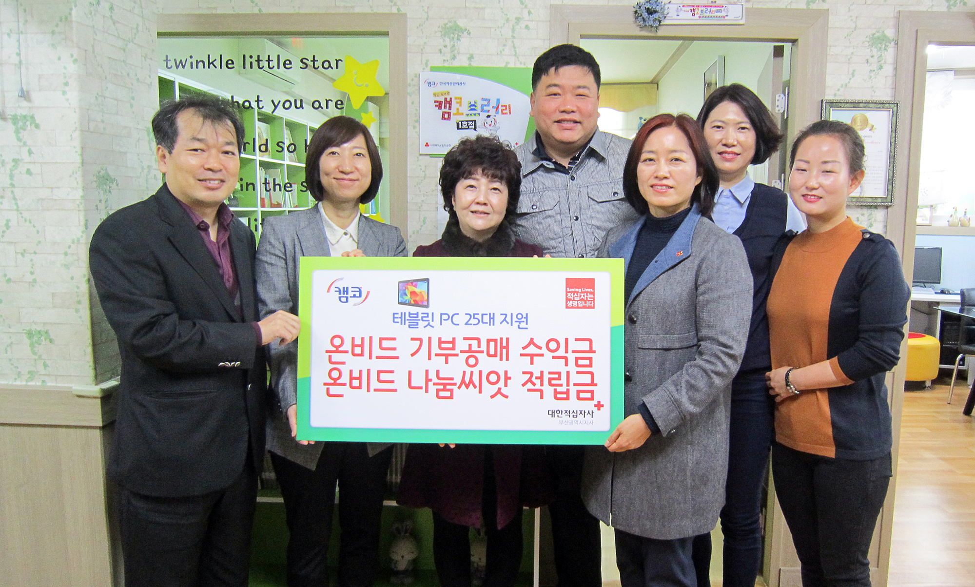 캠코(한국자산관리공사)는 공공자산처분시스템 온비드(Onbid) 기부공매 수익금과 나눔씨앗 적립금을 대한적십자사 부산지사에 전액 기부하고 이를 통해 마련한 태블릿PC 25대를 저소득가정 아동․청소년 및 한솔 등 부산 소재 지역아동센터에 전달했습니다.