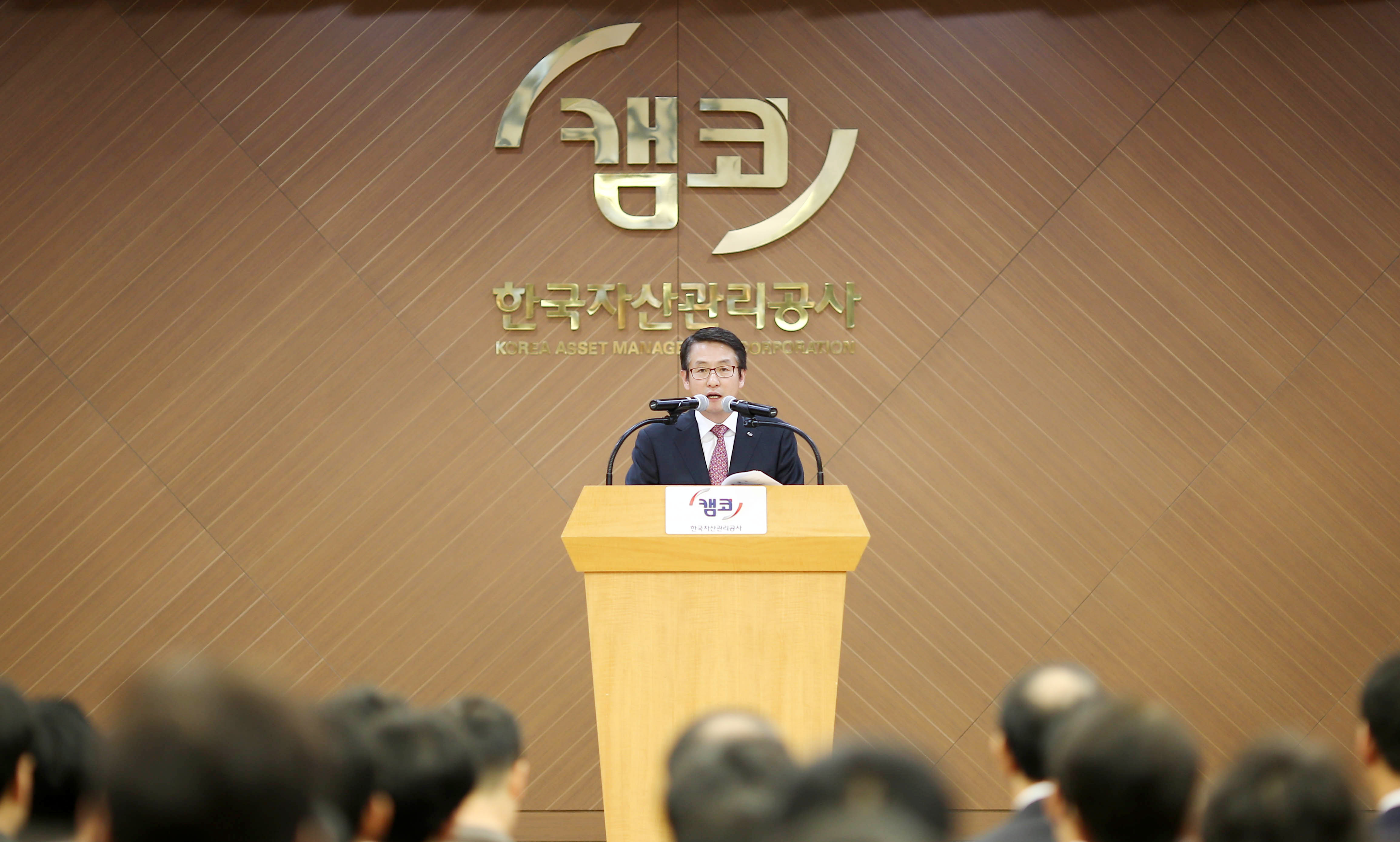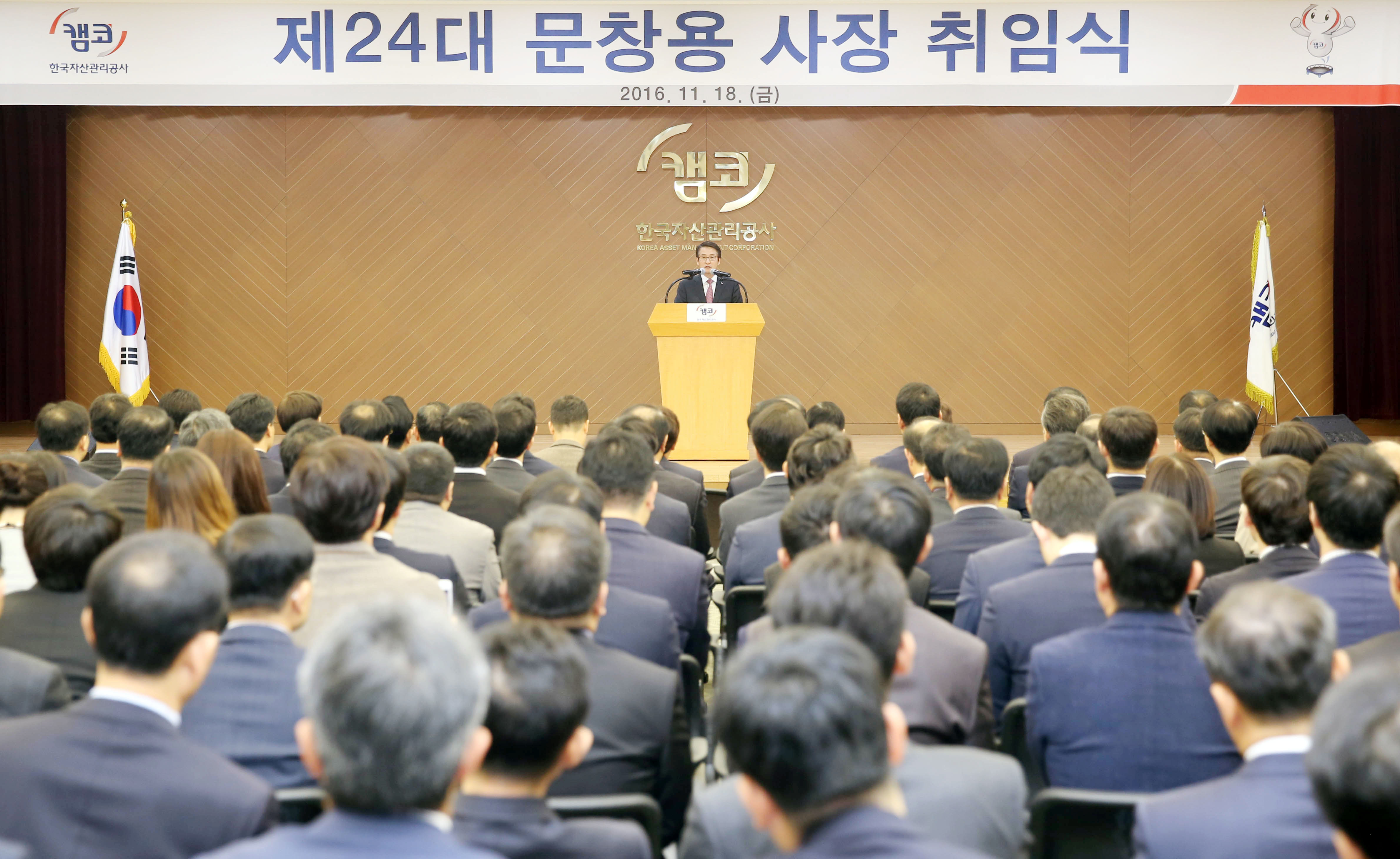 지난 11월 18일 금요일 캠코 본사가 위치한 부산국제금융센터 3층 캠코마루에서는 제24대 문창용 사장의 취임식이 개최되었습니다. 문창용 사장은 “앞으로 공공 및 민간과의 협력을 통한 기업구조조정 활성화, 정부위탁업무를 통한 국가재정 수입증대 기여, 공적 배드뱅크 역할 확대 등 종합자산관리기관으로서의 위상을 확고히 다져 나갈 것”이라고 밝혔습니다.