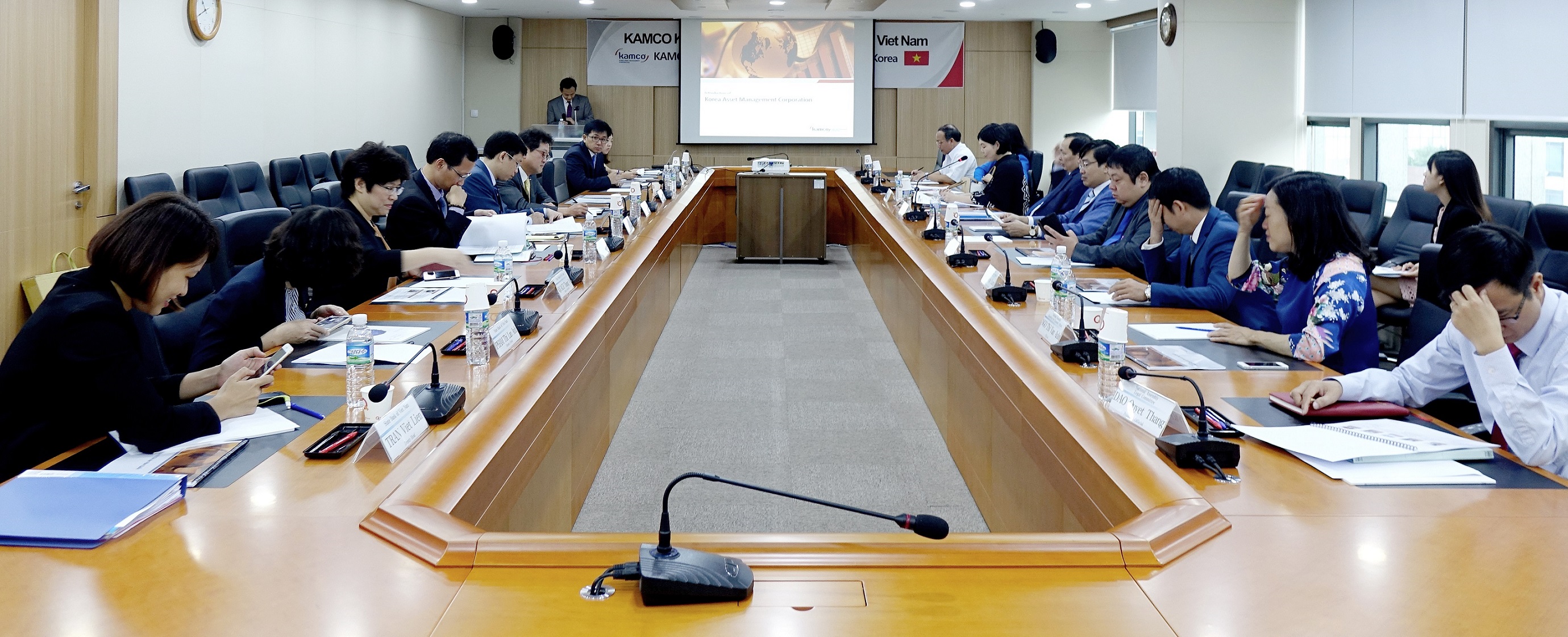 캠코(한국자산관리공사, 사장 문창용)는 8월 18일(금) 오전 10시 서울지역본부 14층 대회의실에서 베트남 중앙은행 다오 민 뚜(Dao Minh Tu) 부총재를 비롯한 은행감독 및 법제국 등 소속 고위공무원과 국회의원 및 관련 위원회 소속 대표단 등 13명을 대상으로 부실채권 정리에 대한 캠코의 경험과 노하우 등을 전수하였습니다.