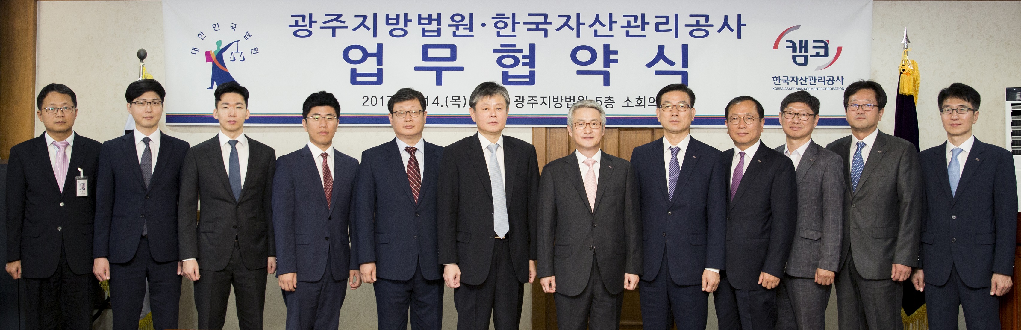 캠코(한국자산관리공사, 사장 문창용)는 9월 14일(목) 오후 2시 광주지방법원 5층 소회의실에서 광주지방법원(법원장 김광태)과 「회생기업 구조조정」 및 「공적채무조정」 지원을 위한 업무협약을 체결하였습니다.