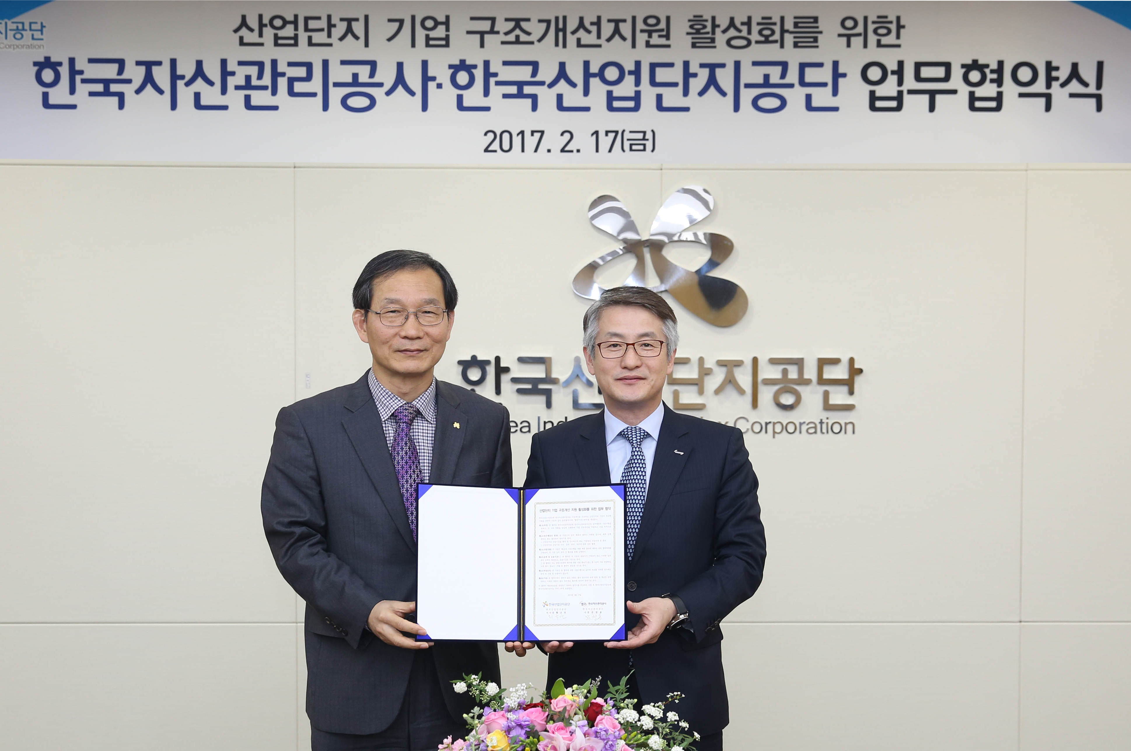 캠코(한국자산관리공사, 사장 문창용)와 한국산업단지공단(이사장 황규연)은 2월 17일(금) 오전 10시30분 한국산업단지공단 본사(대구 동구)에서 ‘산업단지 입주기업의 경영정상화 지원 활성화’를 위한 업무협약을 체결했습니다.