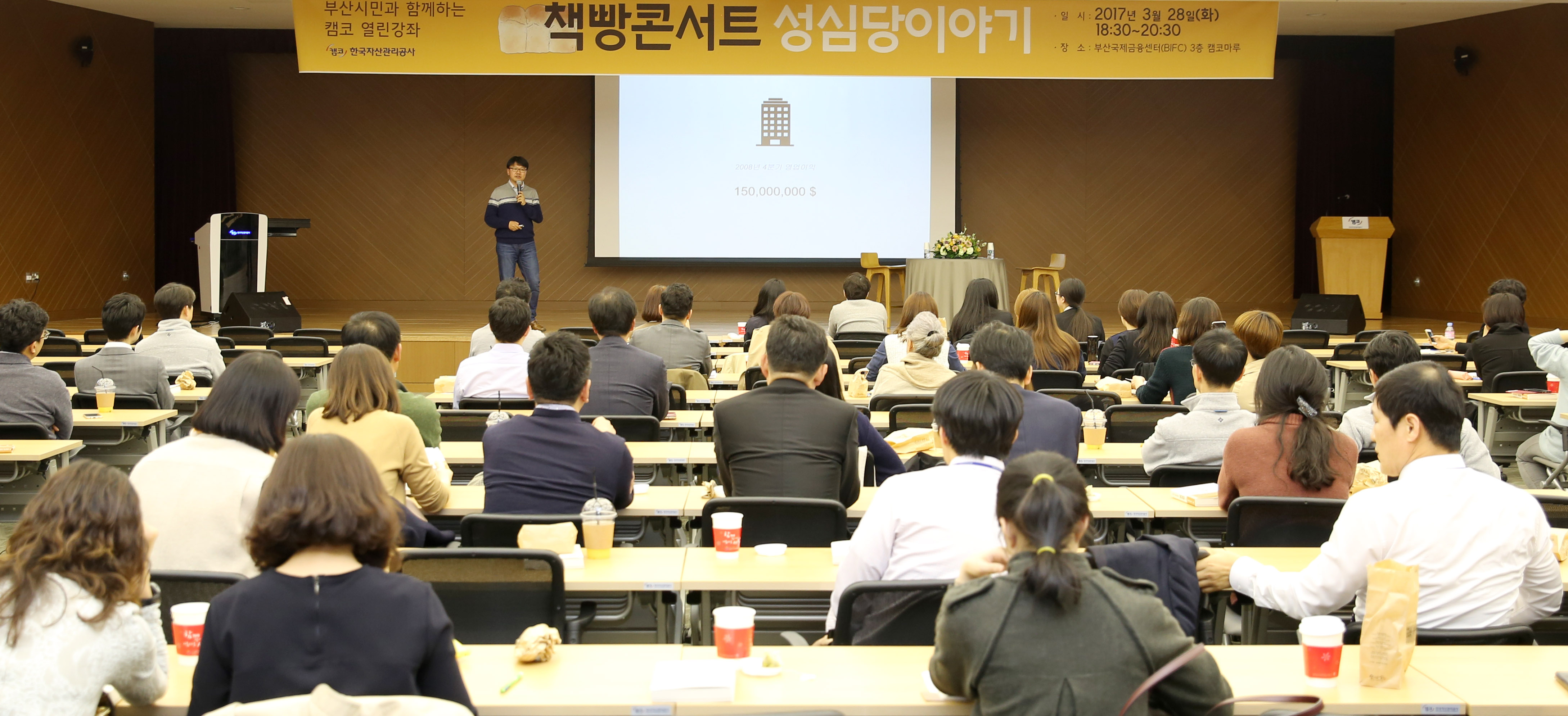 캠코(한국자산관리공사, 사장 문창용)는 3월 28일(화) 오후 6시 30분 본사(BIFC, 부산 문현동 소재) 3층 캠코마루에서 독서경영의 일환으로 부산시민과 함께하는 열린강좌 “책빵 콘서트”를 개최했습니다.