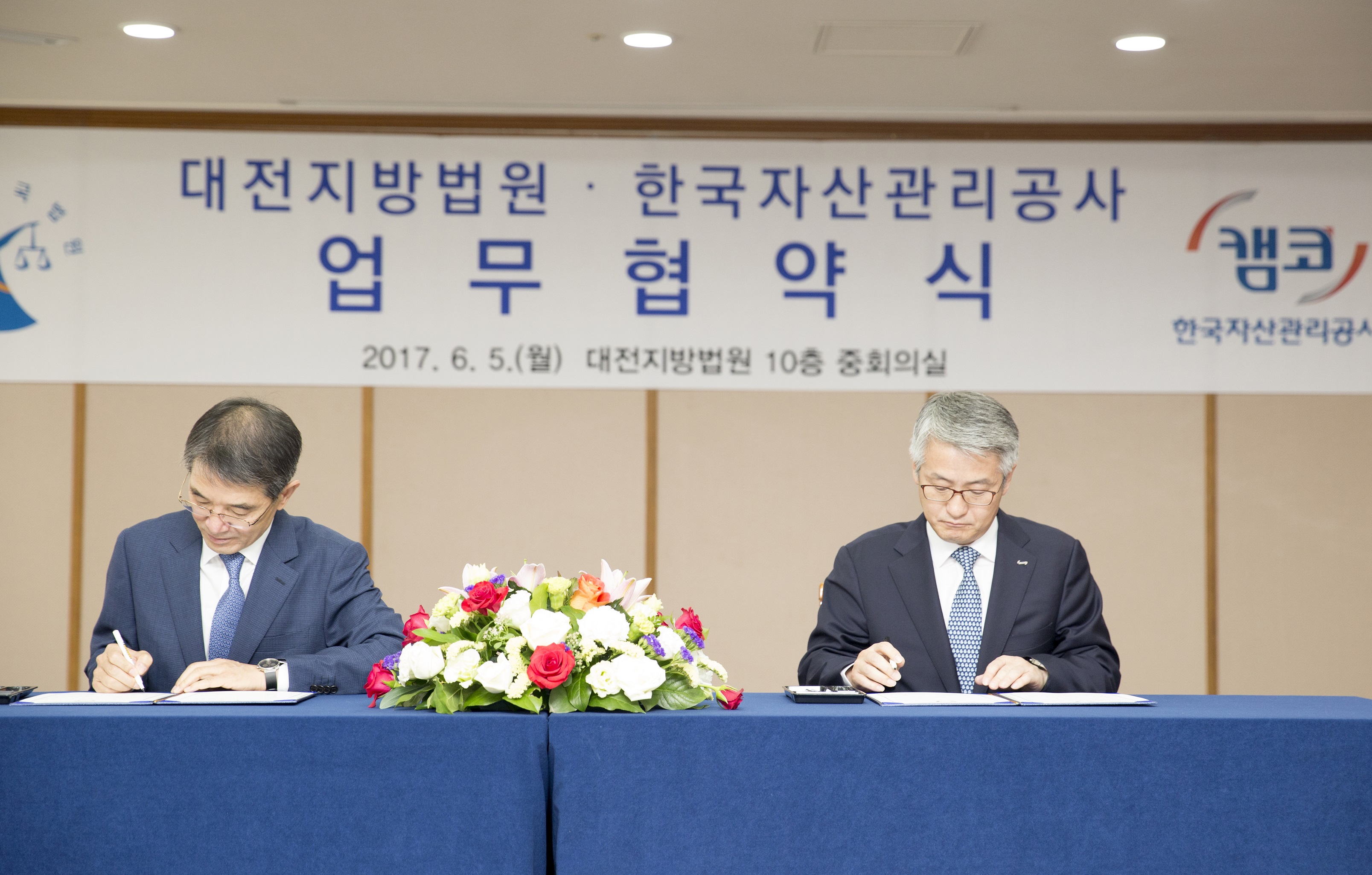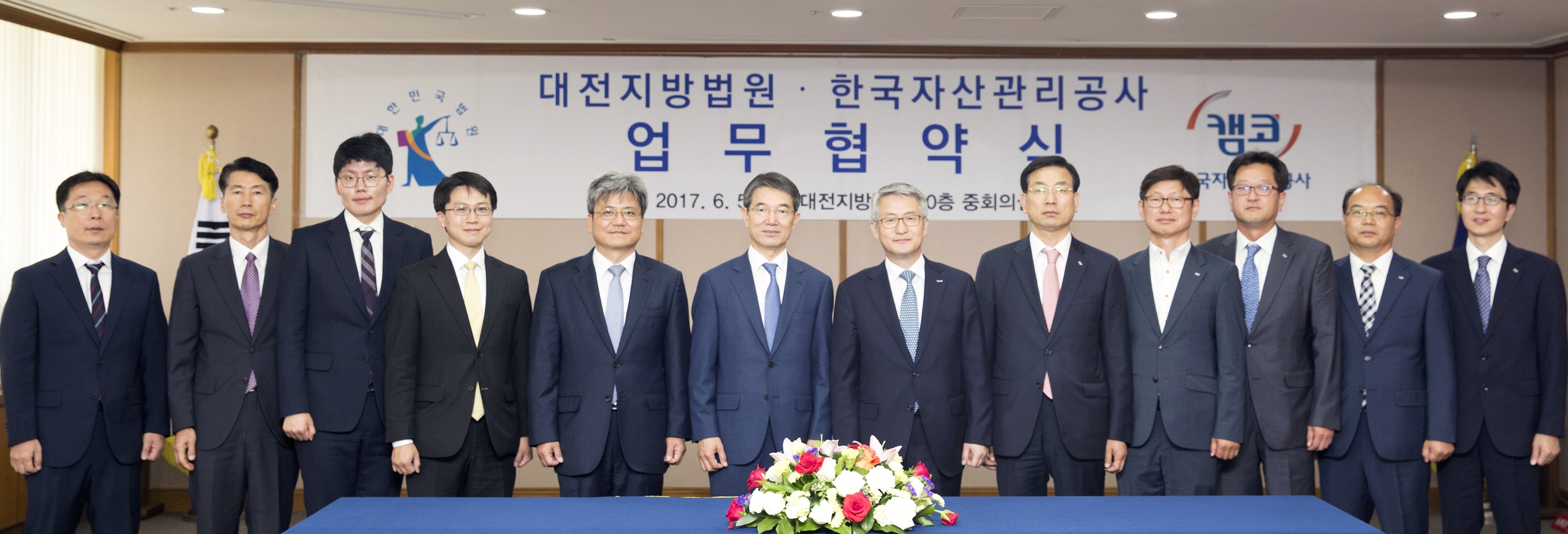 캠코(한국자산관리공사, 사장 문창용)는 6월 5일(월) 오전 11시 30분 대전지방법원 10층 중회의실에서 대전지방법원(법원장 안철상)과 「회생기업 구조조정」 및 「공적채무조정」 지원을 위한 업무협약을 체결했습니다.