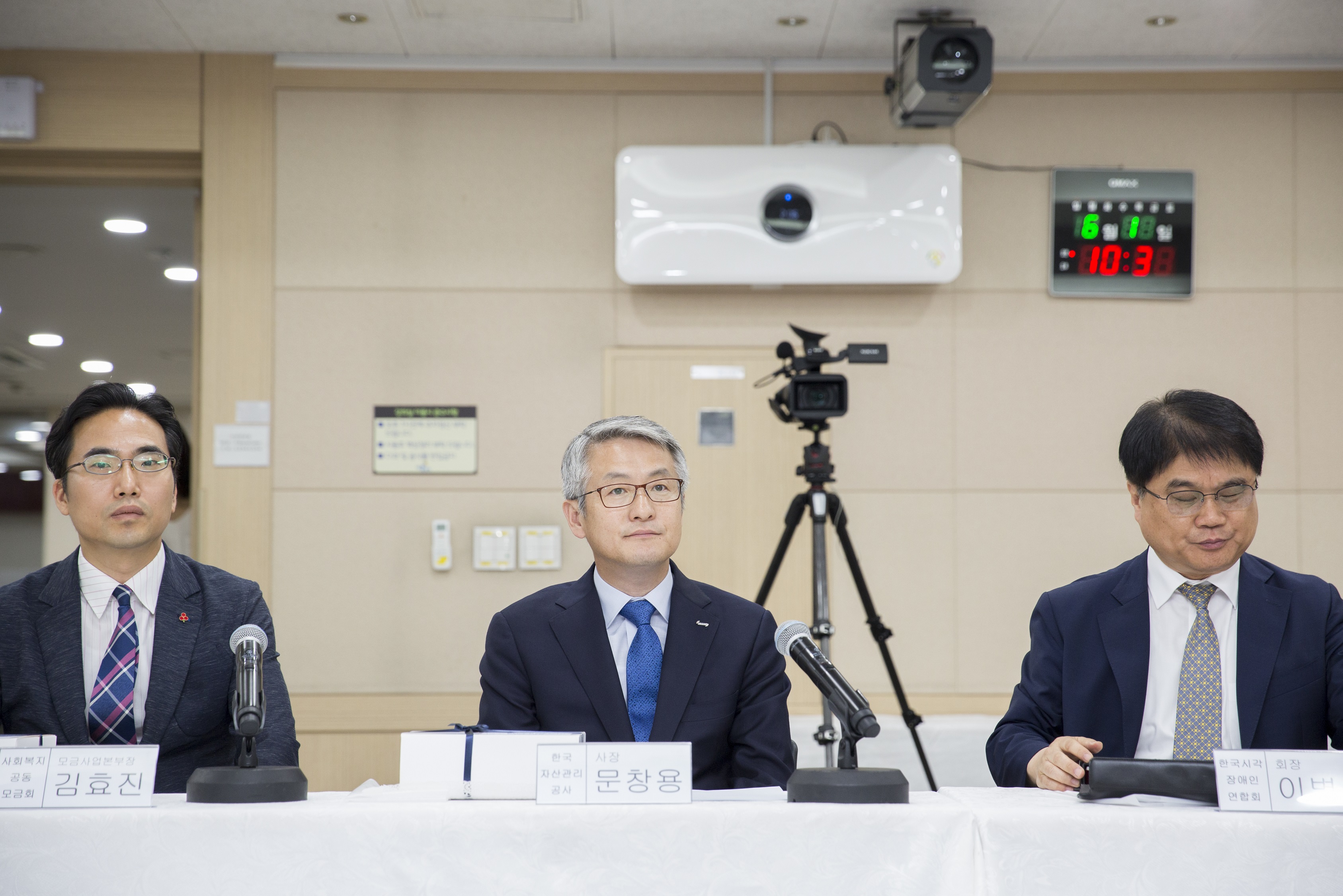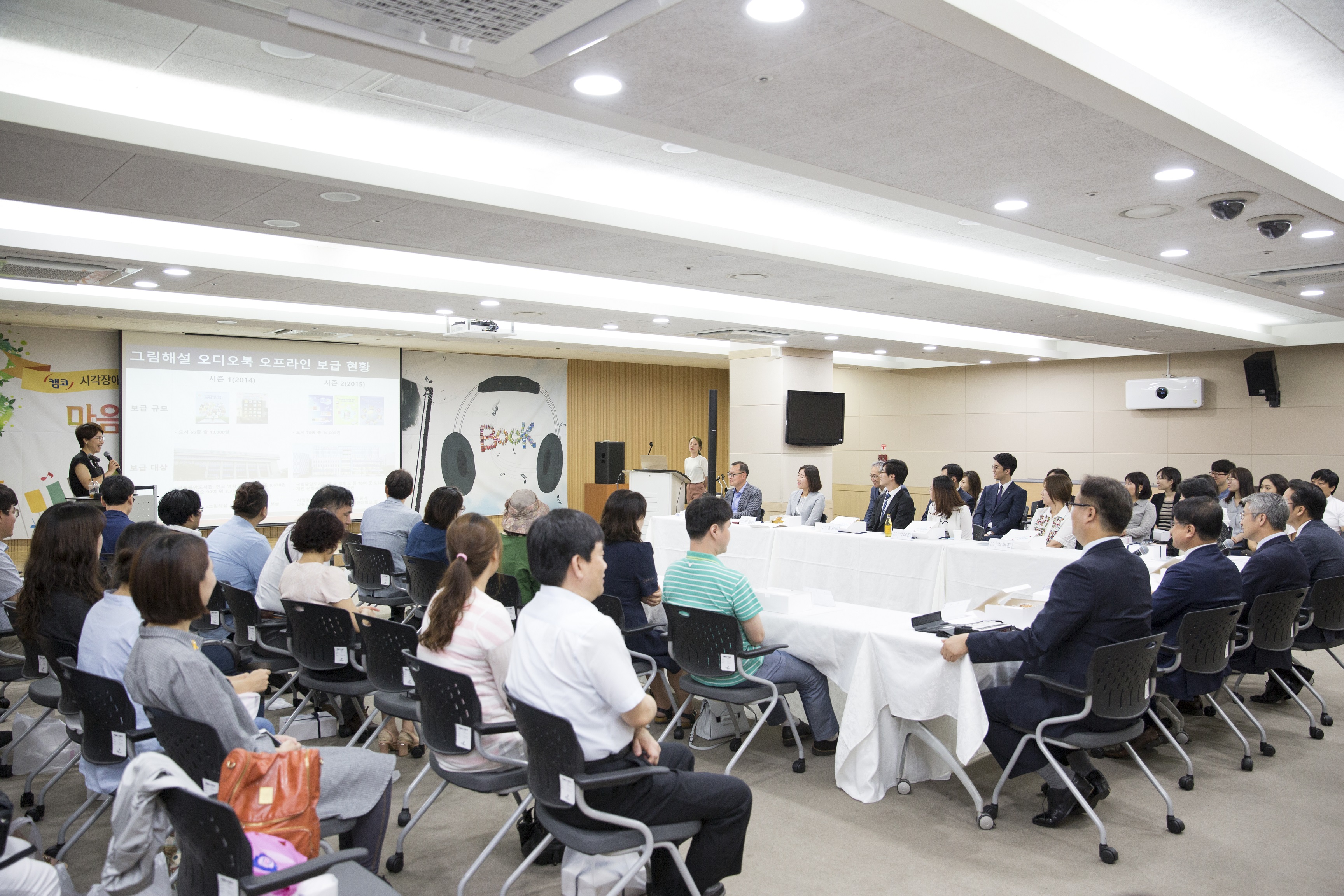 시각장애인 20여명을 비롯, 캠코 문창용 사장, 이병돈 한국시각장애인연합회장, 사회복지공동모금회 김효진 본부장, 서혜정 성우와 목소리 재능기부자 등이 참석했습니다. |