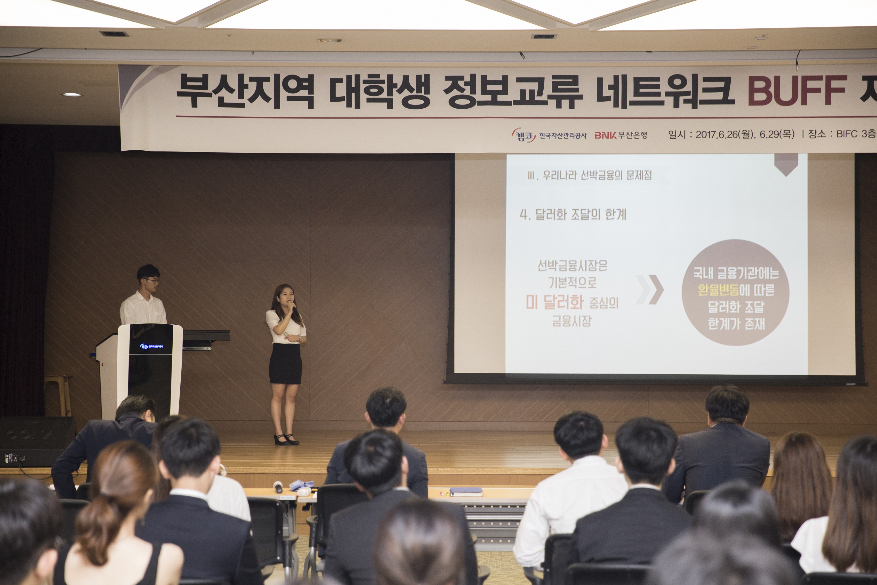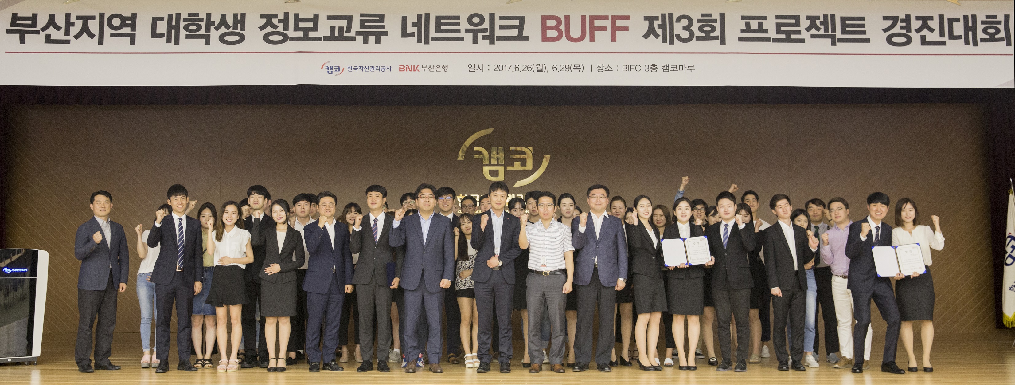 캠코(한국자산관리공사, 사장 문창용)와 BNK금융그룹(회장 성세환)은 6월 29일(목) 부산국제금융센터 3층 캠코 대강당에서 ‘대학생 정보교류 네트워크(BUFF*) 제3회 프로젝트 경진대회’를 개최했습니다.