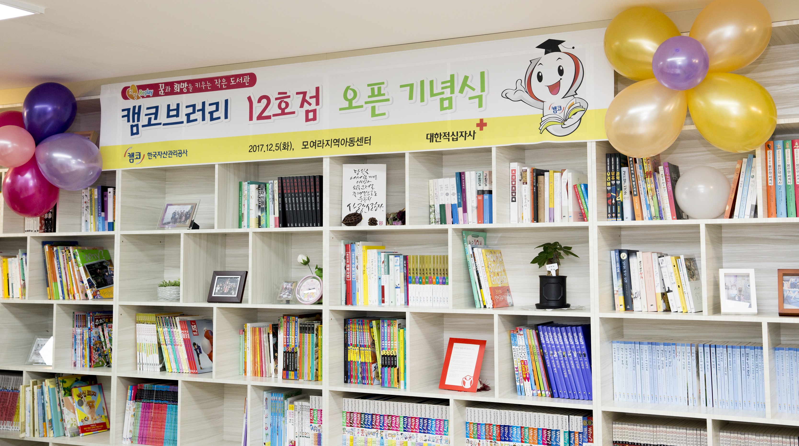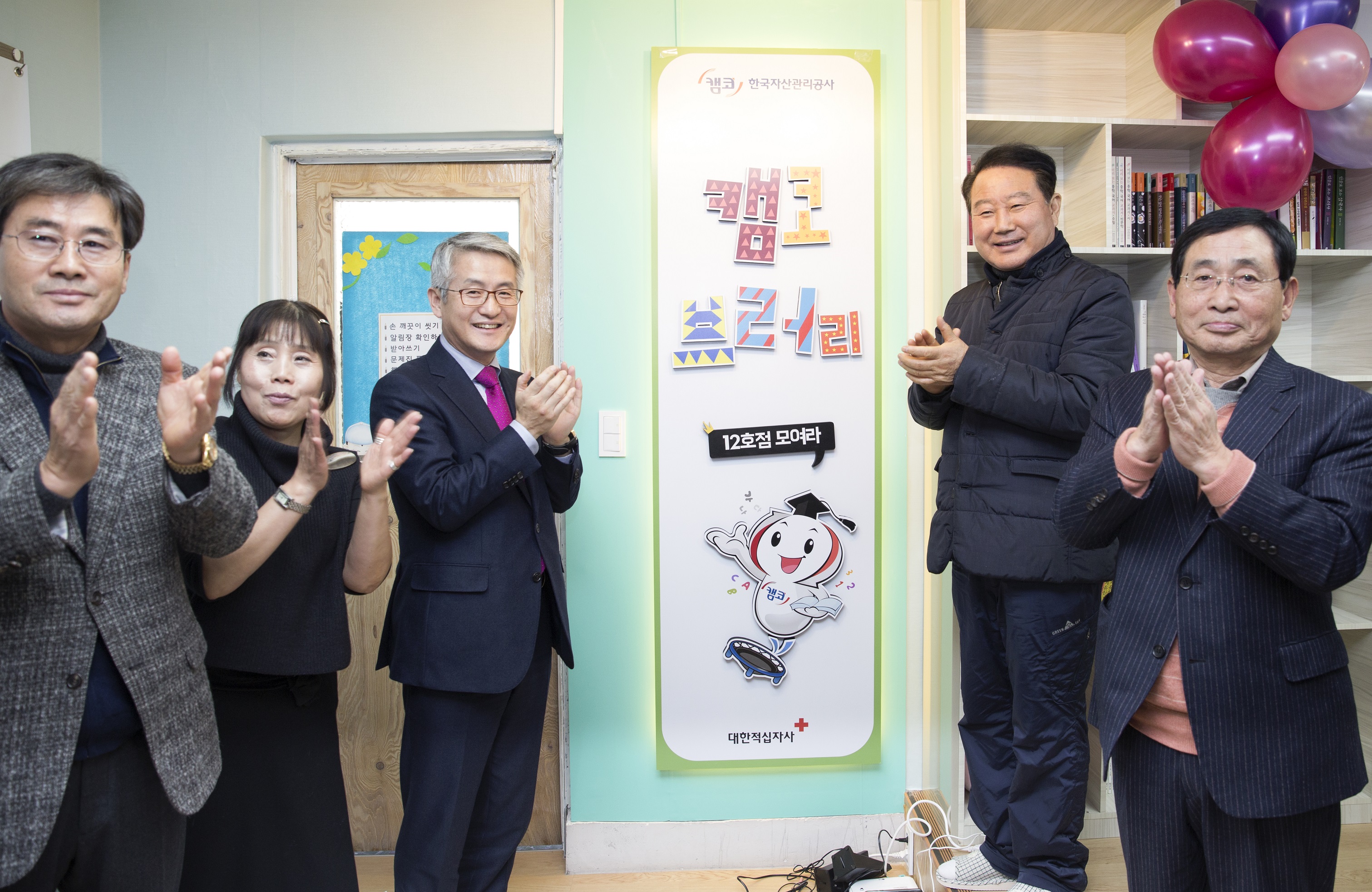 12월 5일(화) 오후 3시 모여라지역아동센터(부산 동구 소재)에서 문창용 캠코 사장, 박삼석 부산광역시 동구청장, 정정희 모여라지역아동센터장 등 관계자가 참석한 가운데 「캠코브러리 12호점」 개관식을 가졌습니다. 캠코브러리는 아동 및 청소년의 학습문화 개선과 정서 함양을 위해 지역아동센터 내 노후 공간을 리모델링하여 설치한 작은도서관입니다.