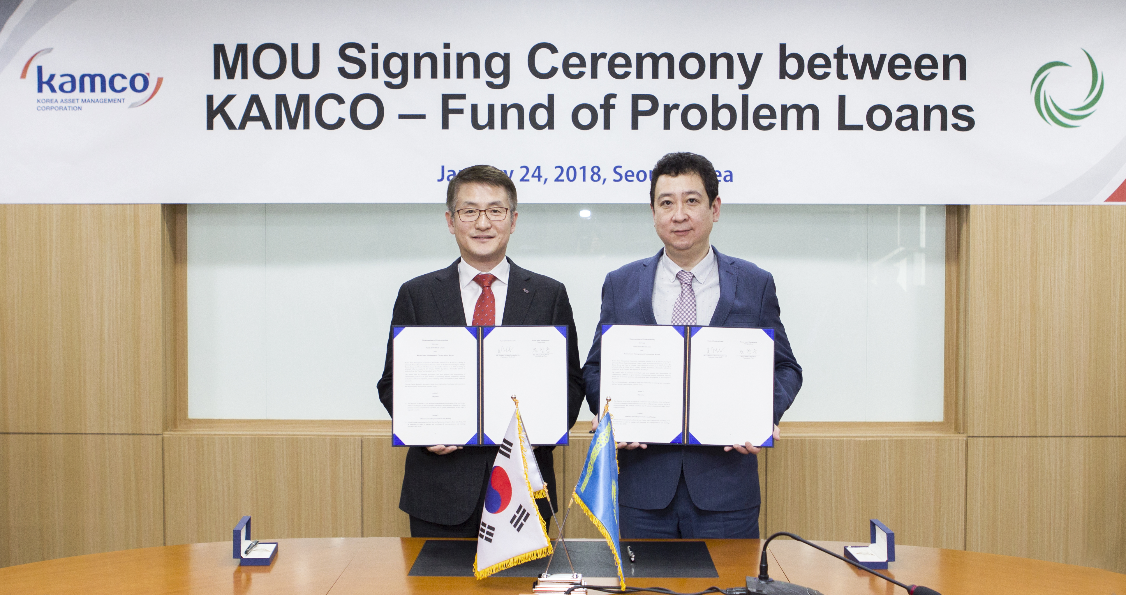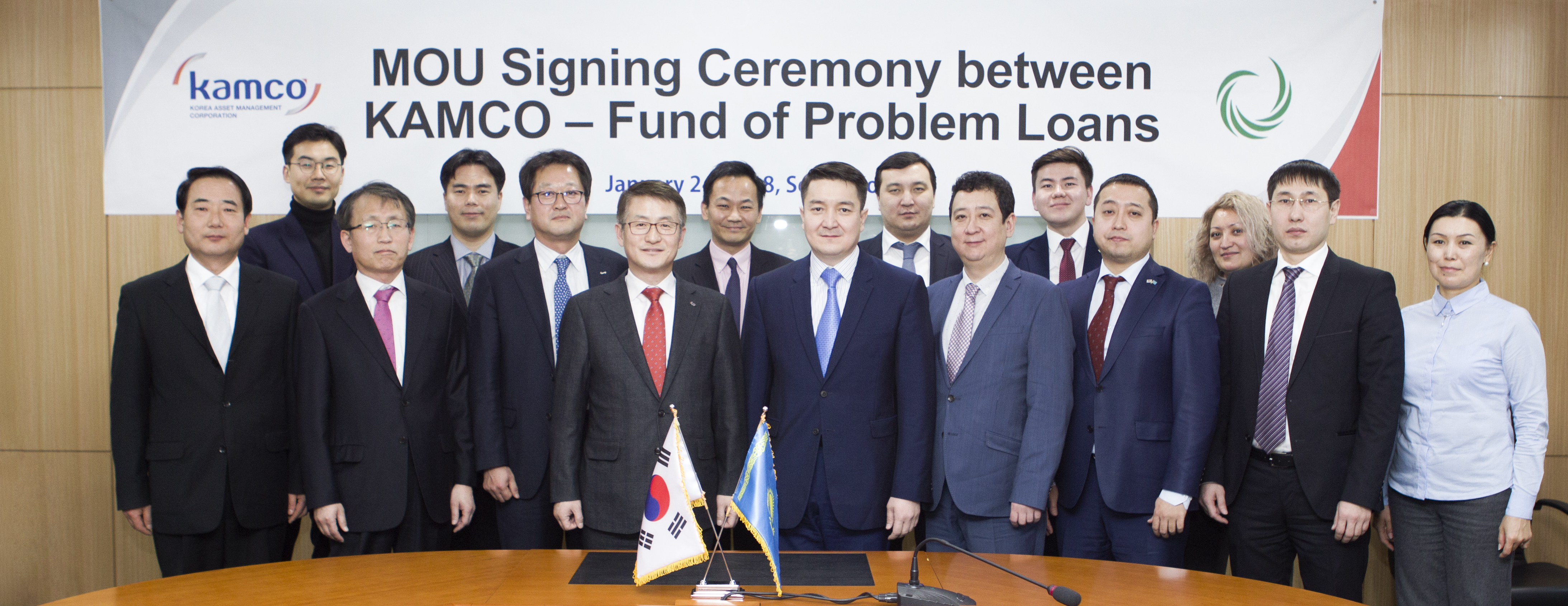 캠코(한국자산관리공사, 사장 문창용)는 1월 24일(수) 오후 3시 서울지역본부 4층 대회의실에서 카자흐스탄 재무부 산하 부실채권정리기금(Fund of Problem Loans)과 '카자흐스탄 부실채권 정리 및 기금 운영 등에 관한 업무협력 양해각서(MOU)'를 체결하고 부실채권정리 노하우를 전수하기 위한 연수를 진행한다고 밝혔습니다.