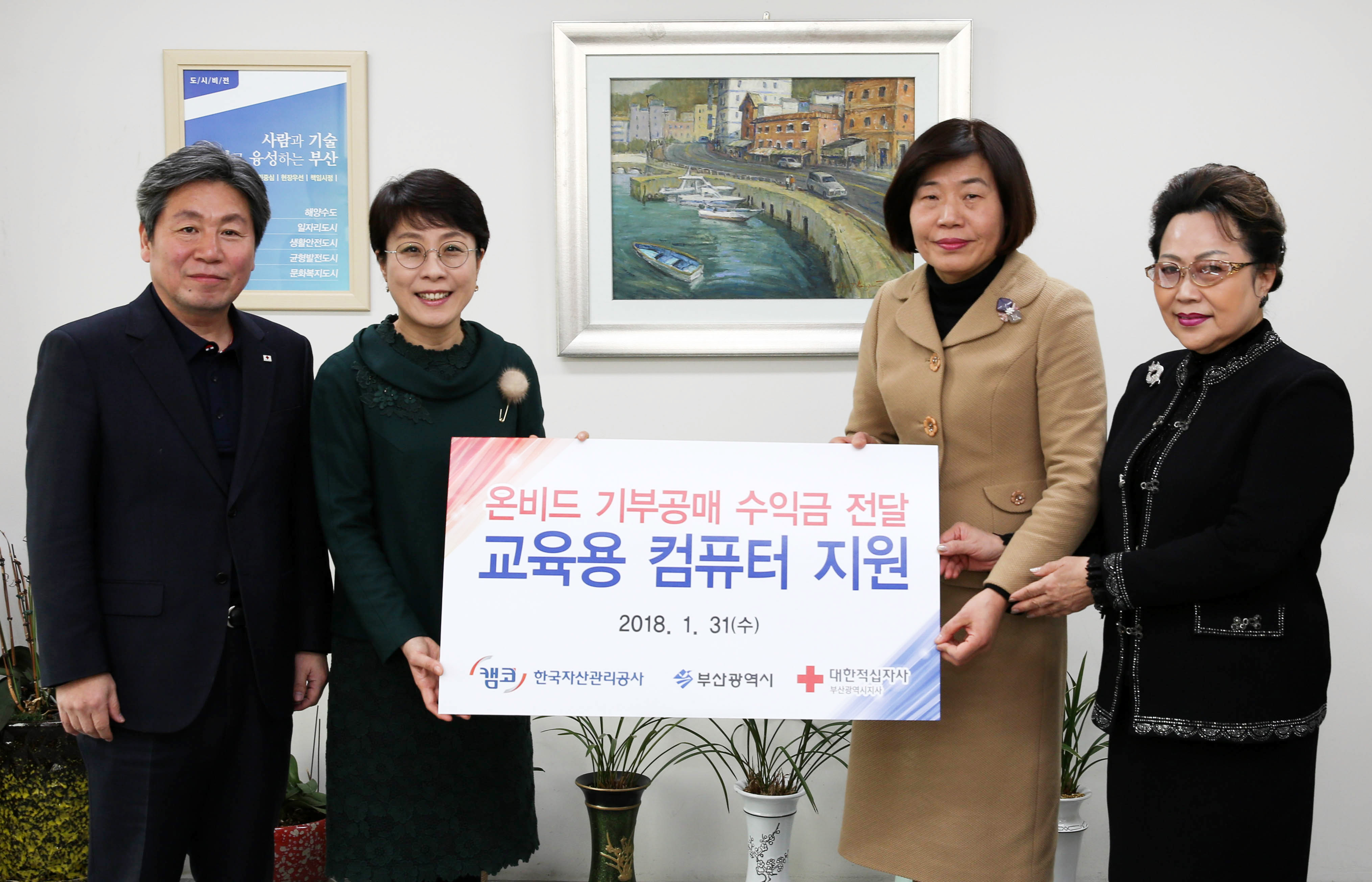 캠코(한국자산관리공사, 사장 문창용)는 1월 31일(수) 오후 2시 부산시청에서 공공자산처분시스템인 온비드(www.onbid.co.kr)를 통해 진행한 '기부공매' 낙찰수익금 등 3천6백만원을 대한적십자사 부산지사에 전달했다고 밝혔습니다.