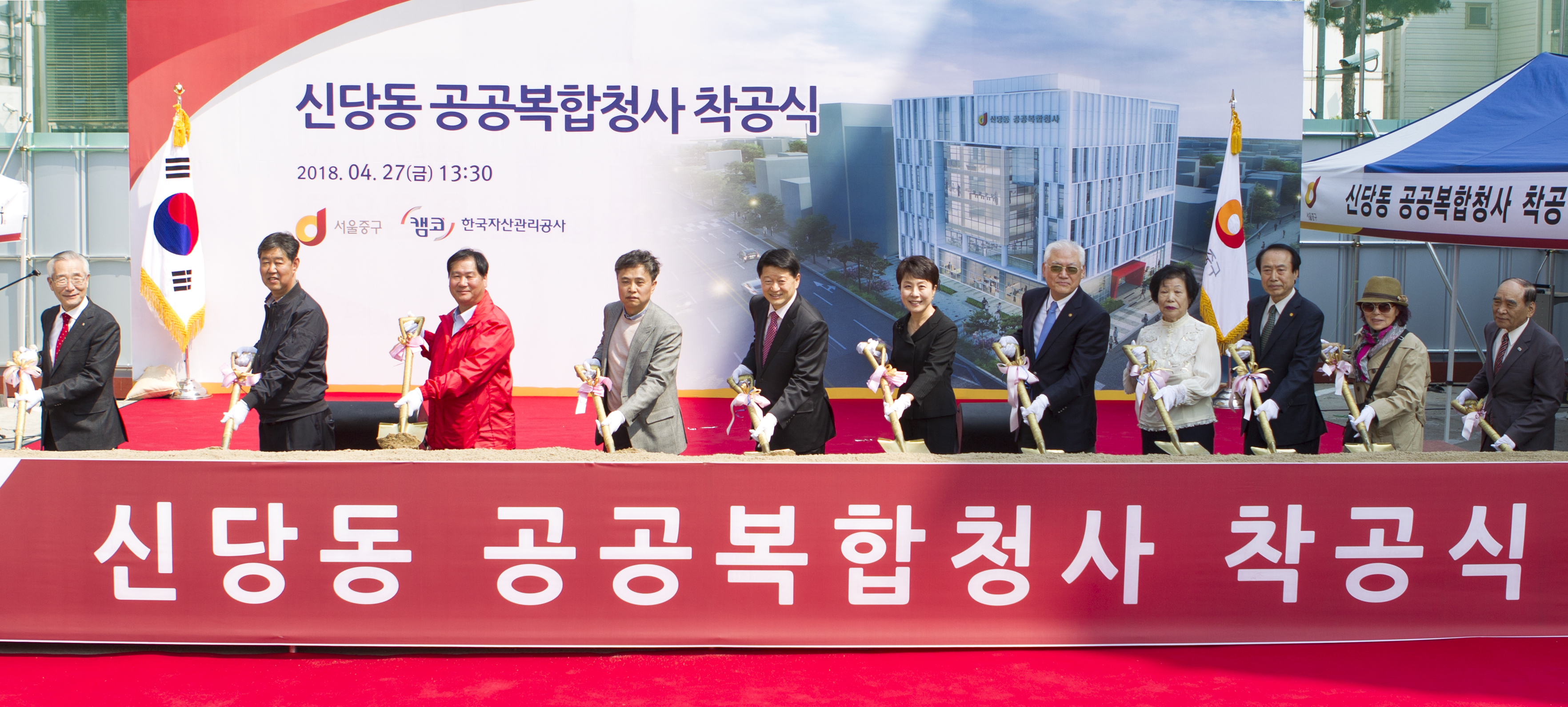 캠코(한국자산관리공사, 사장 문창용)는 4월 27일(금) 오후 2시 신당동 주민센터(서울시 중구 신당동 소재) 부지에서 허은영 캠코 이사, 최창식 서울시 중구청장 등 내외빈 200여명이 참석한 가운데 「중구 신당동 공공복합청사」기공식을 개최했습니다.