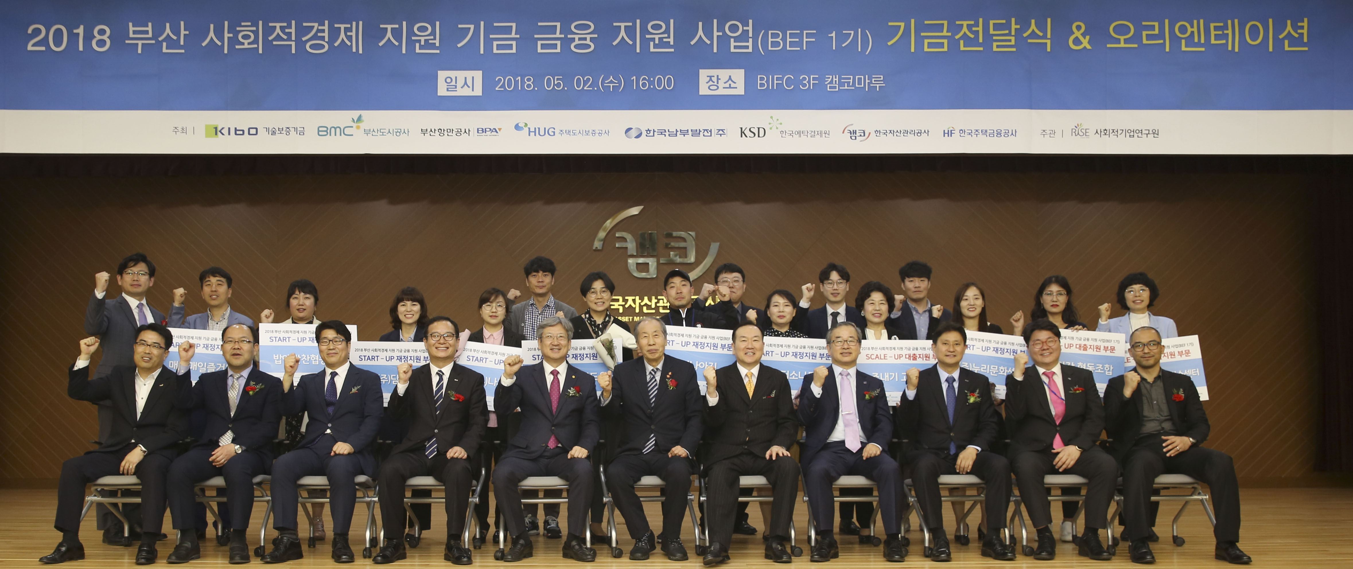 한국자산관리공사(캠코, 사장 문창용) 등 부산지역 8개 공공기관과 (사)사회적기업연구원은 5월 2일(수) 오후 4시 30분 부산국제금융센터(BIFC) 3층 캠코마루에서 「부산 사회적경제 지원 기금(BEF)」의 금융지원 사업 대상자로 선정된 부산지역 15개 사회적경제기업에 총 4.9억원을 전달했습니다.