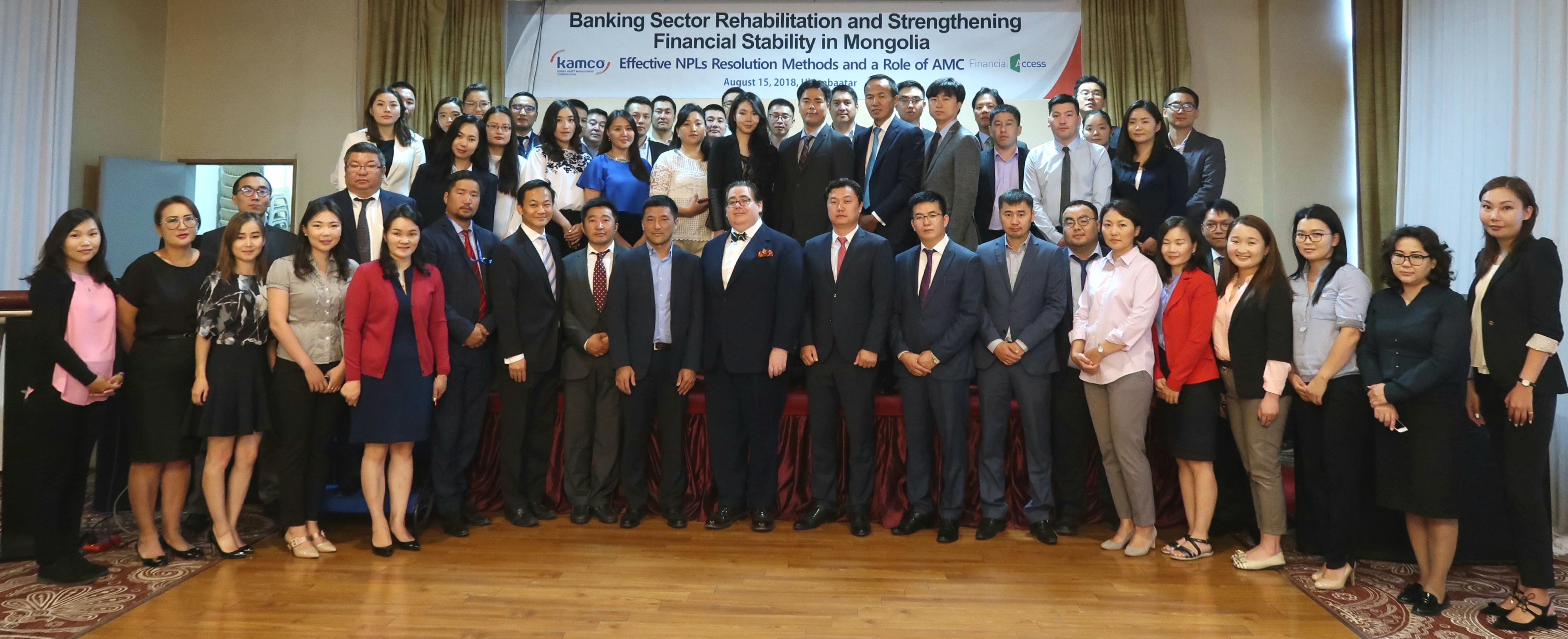 캠코(한국자산관리공사, 사장 문창용)는 8월 15일(수) 오전 9시 몽골 울란바토르에서 몽골 재무부 소너 루브산돌쯔(Sonor Luvsandorj) 금융정책국장, 은행연합회 우넨밧 직지드(Unenbat Jigjid) 회장, 세이빙스 뱅크(Savings Bank) 엥크투르 민주르(Enkhtur Minjuur) 파산관재사무소장 및 중앙은행 관계자 등 70여명이 참석한 가운데 '몽골 은행산업 회복 및 금융 안전성 강화' 세미나를 개최했습니다.