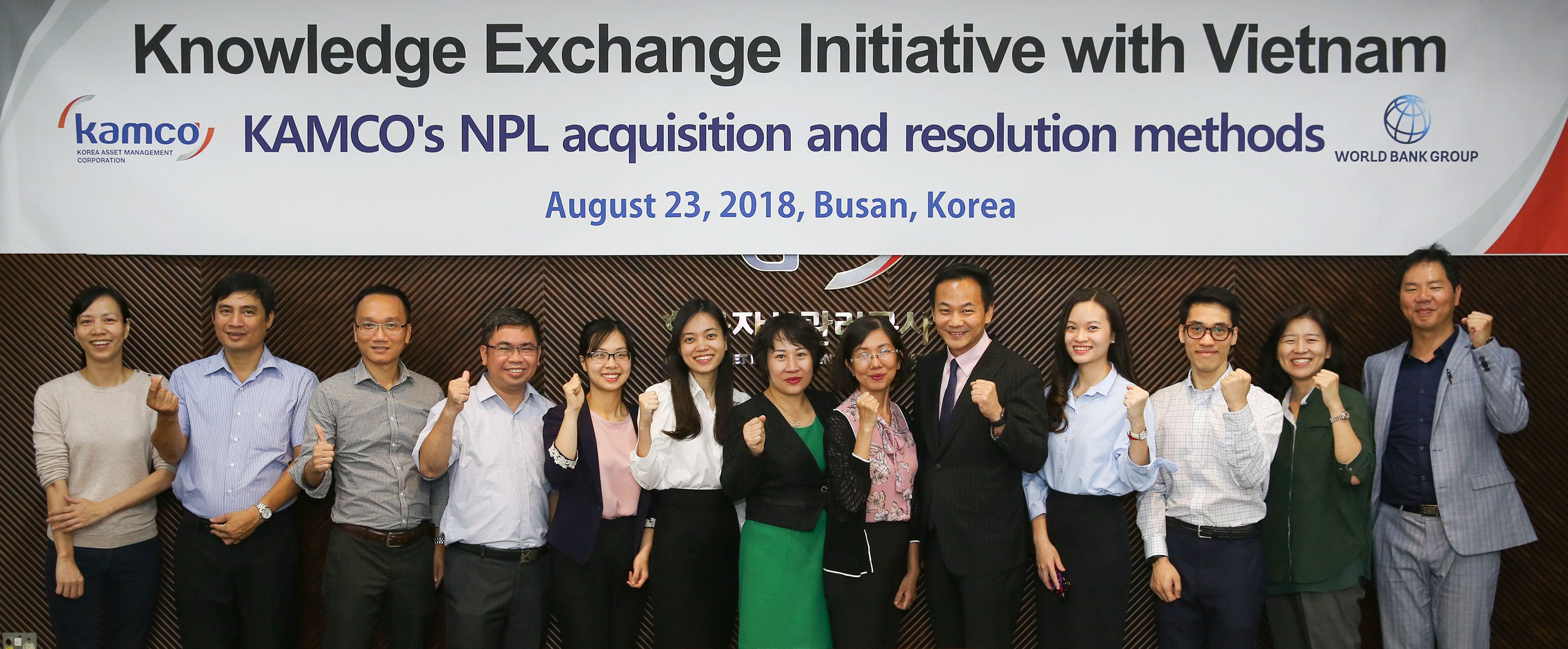 캠코(한국자산관리공사, 사장 문창용)는 8월 23일(목) 오후 1시 부산국제금융센터(BIFC) 본사 47층 대회의실에서 베트남 재무부 팜 탄 탐 금융시장과장을 비롯하여 중앙은행, 법무부, 기획투자부 소속 고위공무원과 호치민 주식 거래소 고 비 후앙 쟈오 부국장 등 유관기관 관계자 11명을 대상으로 캠코의 부실채권 정리 경험과 노하우에 대한 연수를 실시했습니다.