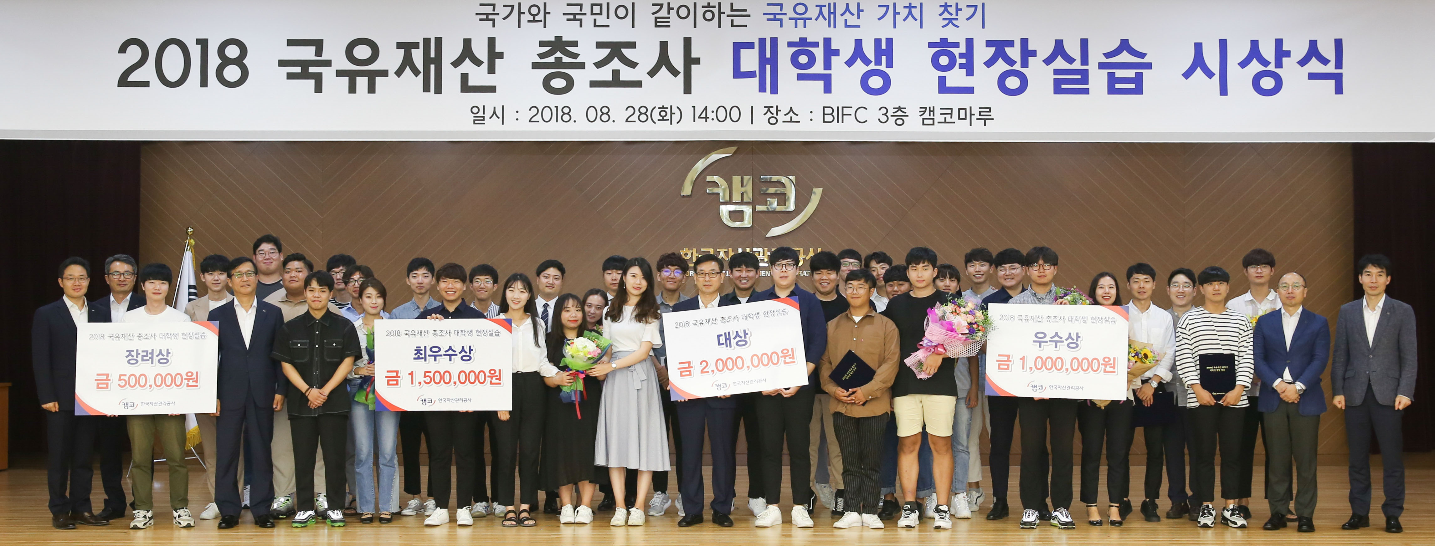 캠코(한국자산관리공사, 사장 문창용)는 8월 28일(화) 오후 2시 부산국제금융센터(BIFC) 본사 3층 캠코마루에서 '2018 국유재산 총조사 현장 실습생 시상식'을 개최했습니다.