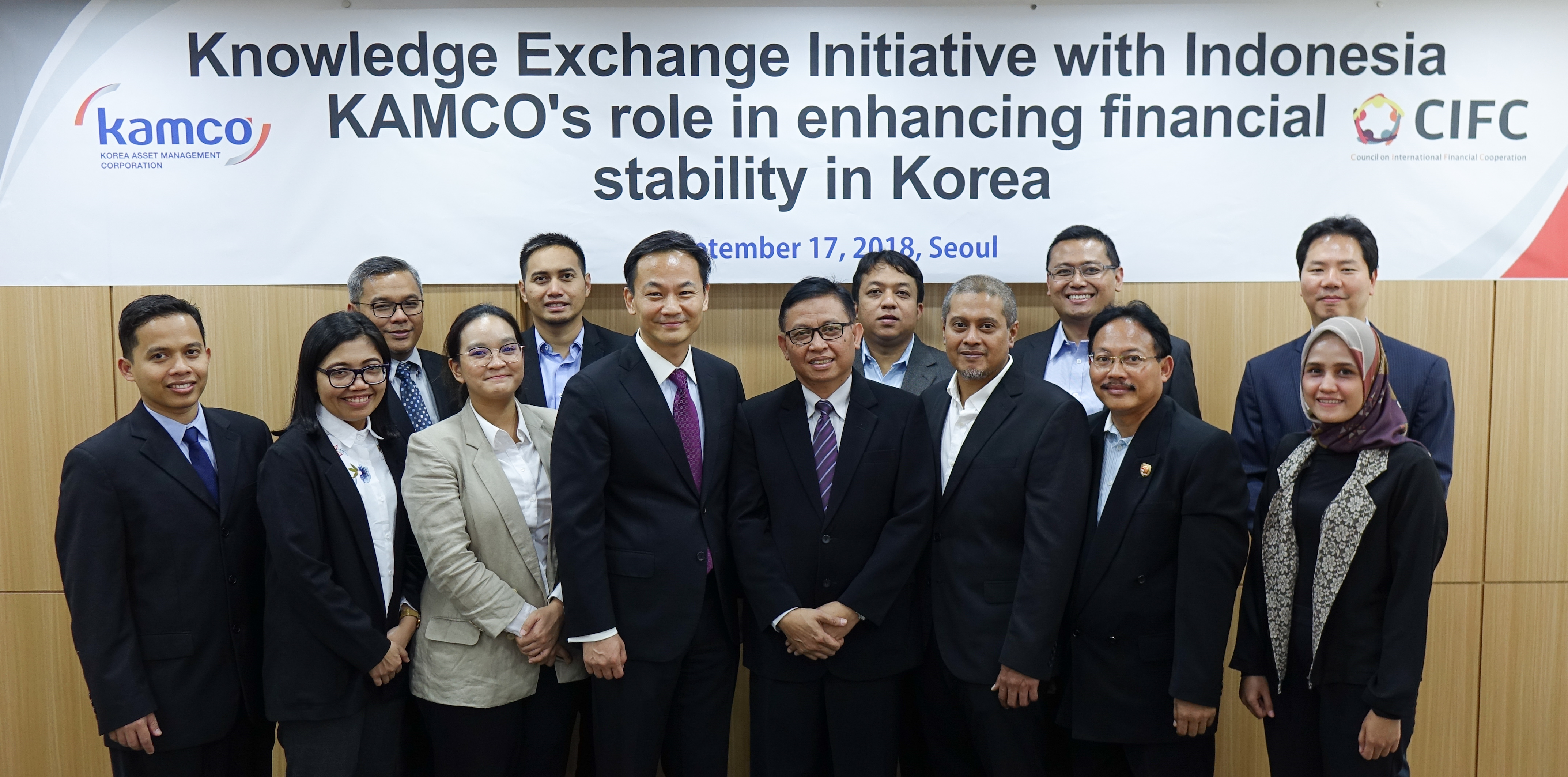 캠코(한국자산관리공사, 사장 문창용)는 9월 17일(월) 오후 1시 30분 서울지역본부 대회의실에서 인도네시아 금융감독청 이만시아(Imansyah) 부위원장과 헨리 리알디(Henry Rialdi) 금융안정시스템 국장, 재무부 와휴 쿠수마 로마호니(Wahyu Kusuma Romadhoni) 자본시장부 팀장 및 예금보험공사 베코 세이아완(Beko Seiawan) 규제그룹 국장 등 캠코를 방문한 인도네시아 사절단 11명을 대상으로 캠코의 부실채권정리 경험과 노하우에 대한 연수를 실시했습니다.