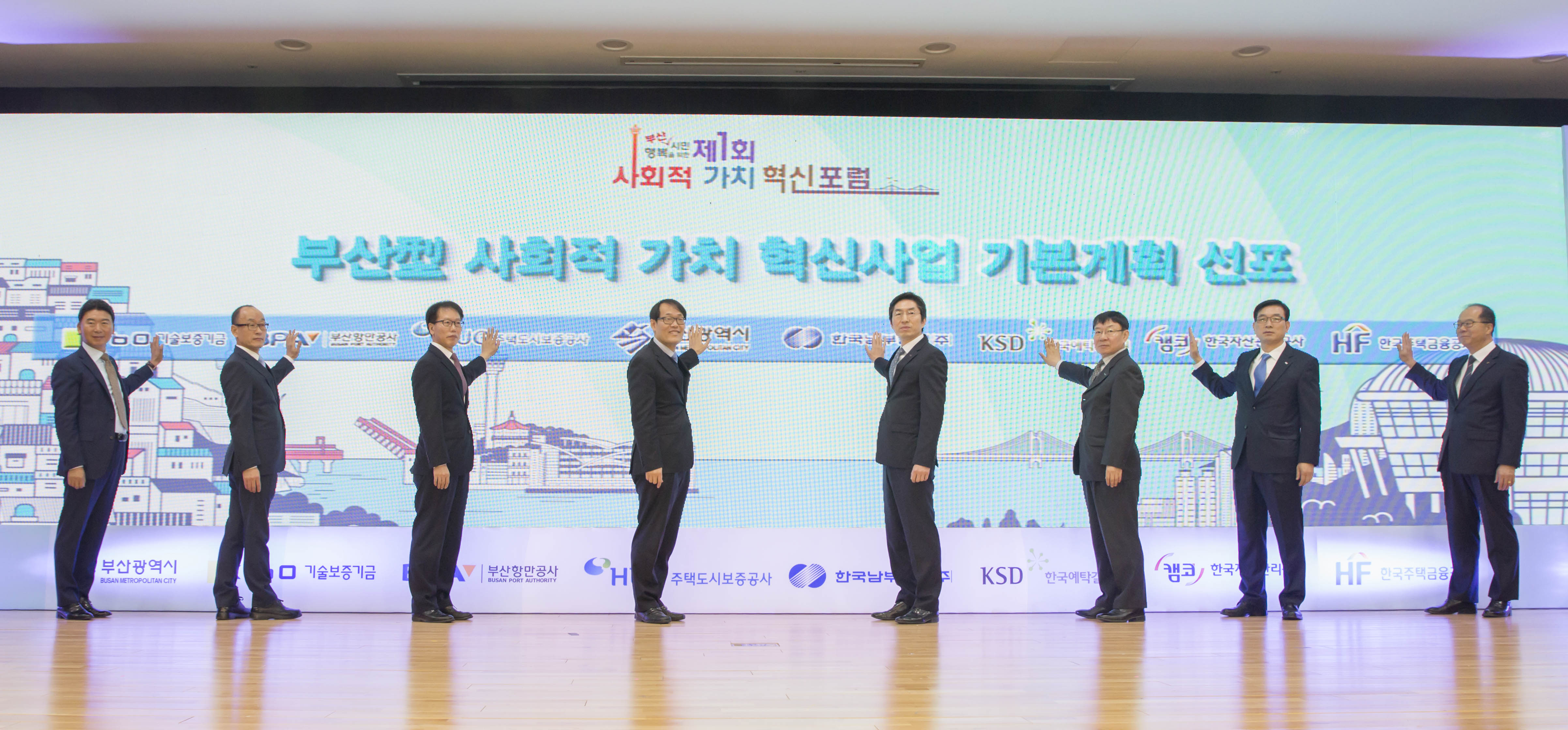 캠코(한국자산관리공사, 사장 문창용) 등 부산지역에 본사를 둔 7개 공공기관은 11월 28일(수) 오전 10시 부산국제금융센터(BIFC) 3층 캠코마루에서 '부산시민의 행복과 삶의 질 제고'를 위한 「사회적 가치 혁신사업 기본계획 선포식」 및 「사회적 가치 혁신포럼」을 개최했습니다.