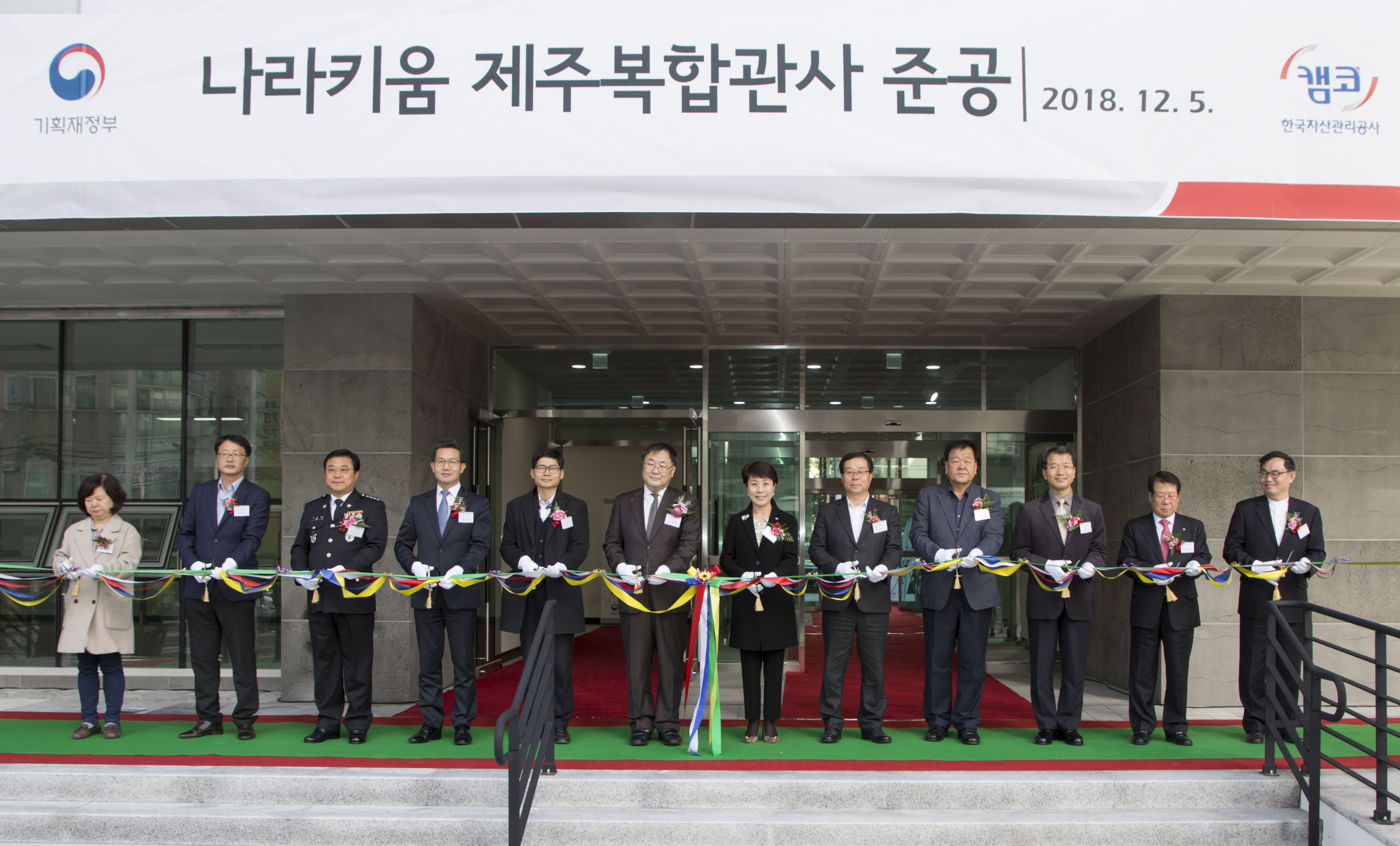 캠코(한국자산관리공사, 사장 문창용)는 12월 5일(수) 오후 2시 舊제주세무서(제주시 중앙로 소재) 부지에서 허은영 캠코 공공개발본부장, 박성동 기획재정부 국고국장 등 관계자 70여명이 참석한 가운데 「나라키움 제주복합관사」 준공식을 개최했습니다.