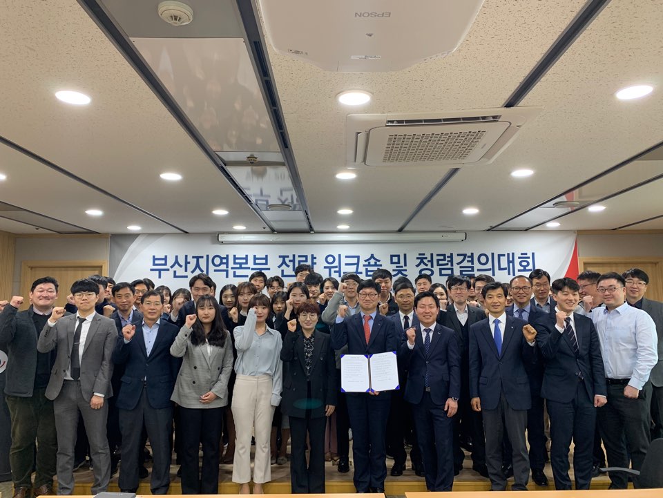 캠코(한국자산관리공사) 부산지역본부(본부장 윤효중)는 4월 9일(화) 현장중심의 청렴문화 확산과 깨끗한 공직풍토 조성을 위하여 윤효중 지역본부장 및 국유재산관리, 공유재산관리, 체납압류채권관리, 서민금융지원업무 실무자 60여명이 모인 가운데 「부산지역본부 반부패·청렴 결의대회」를 실시했습니다.