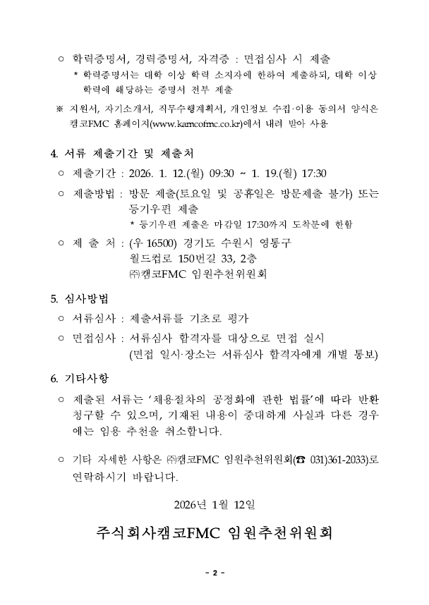 (주)캠코에프엠씨 대표이사 공모 안내