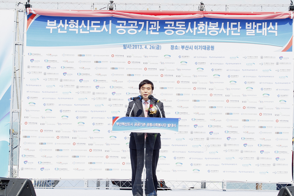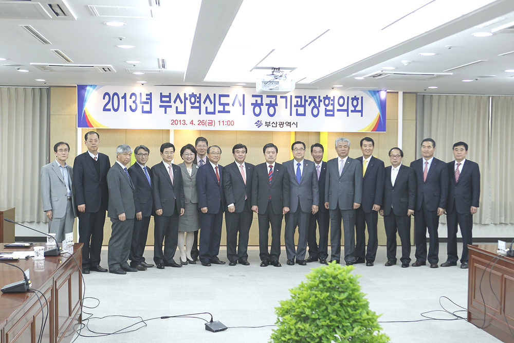캠코(한국자산관리공사, 사장 장영철)는 4월 26일(금) 장영철 캠코 사장을 포함한 13개 공공기관장, 허남식 부산시장, 조성제 부산상공회의소 회장, 성세환 부산은행장, 김정훈 국회 정무위원장이 참석, 부산시청에서 『2013년 부산혁신도시 공공기관 협의회』를 개최하고, 이기대공원 어울마당에서『부산혁신도시 공공기관 공동사회봉사단』발대식을 가졌습니다.