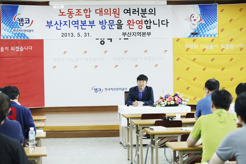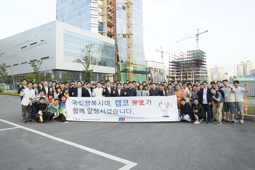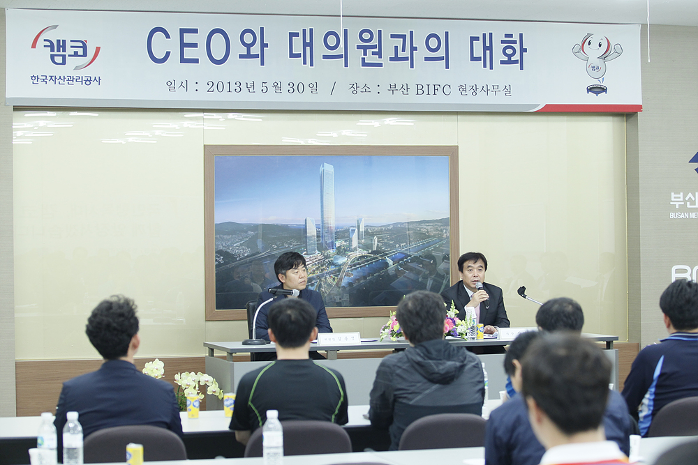 본사의 부산이전을 앞두고 준비사항을 점검하고자 부산에서 개최된만큼 문현지구 공동사옥 건설현장에서 본사이전 진행 내용과 회사의 준비상황이 보고되었으며 대의원들의 질의하는 시간을 가졌습니다. |