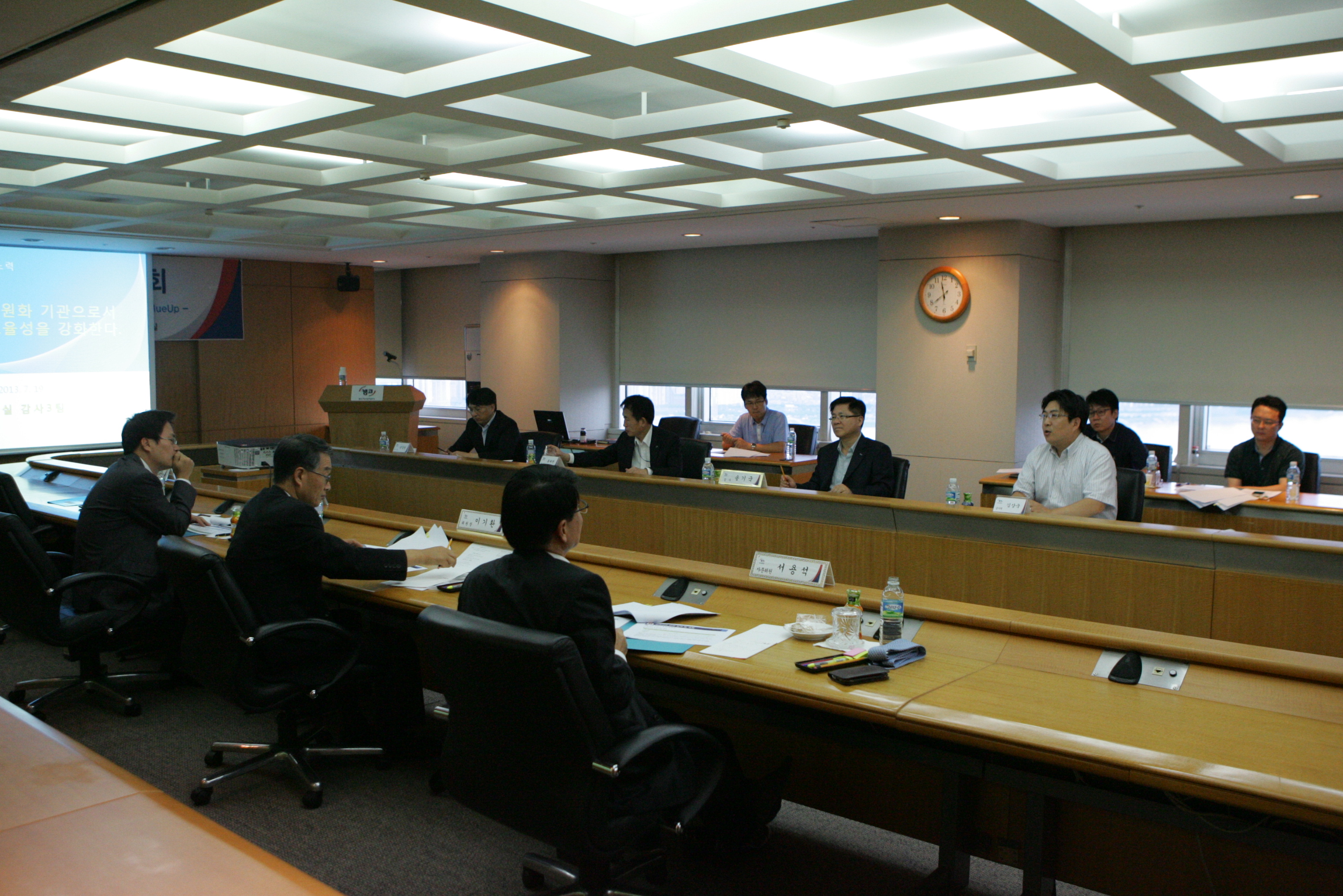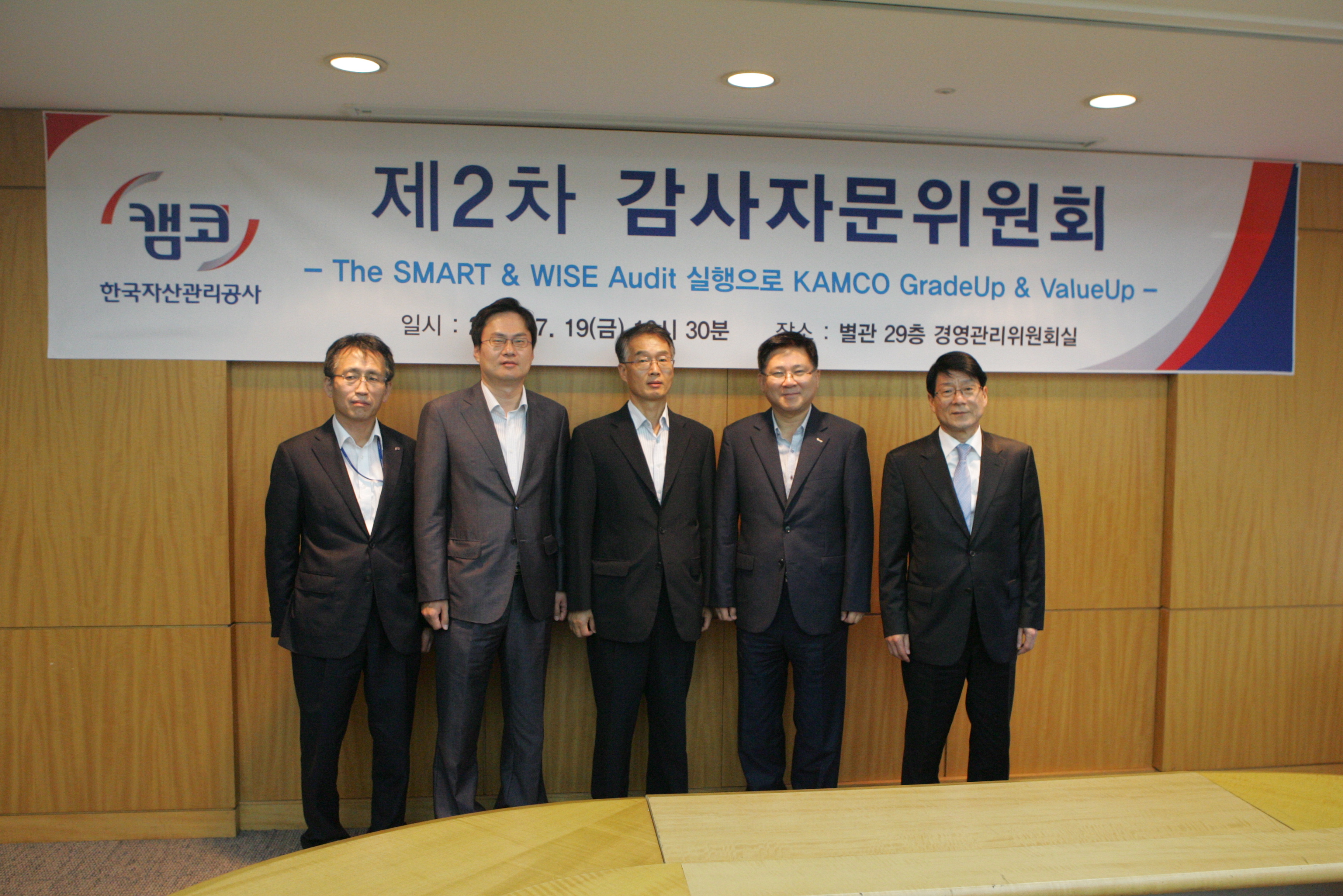 한국자산관리공사 감사실(감사 송기국)은 자체감사활동의 효율성 제고와 대내외 네트워크 활용을 통한 전문성 보완을 위하여 7.19(금) 10시 30분에 2013년도 제2차 감사자문위원회를 개최했습니다. 이번 감사자문위원회에서는 공사 핵심업무의 중장기 미래위험 요인에 대하여 학계, 회계, 감사 부분 등 각계 역량 있는 감사자문위원들이 다양한 의견을 제시했습니다.