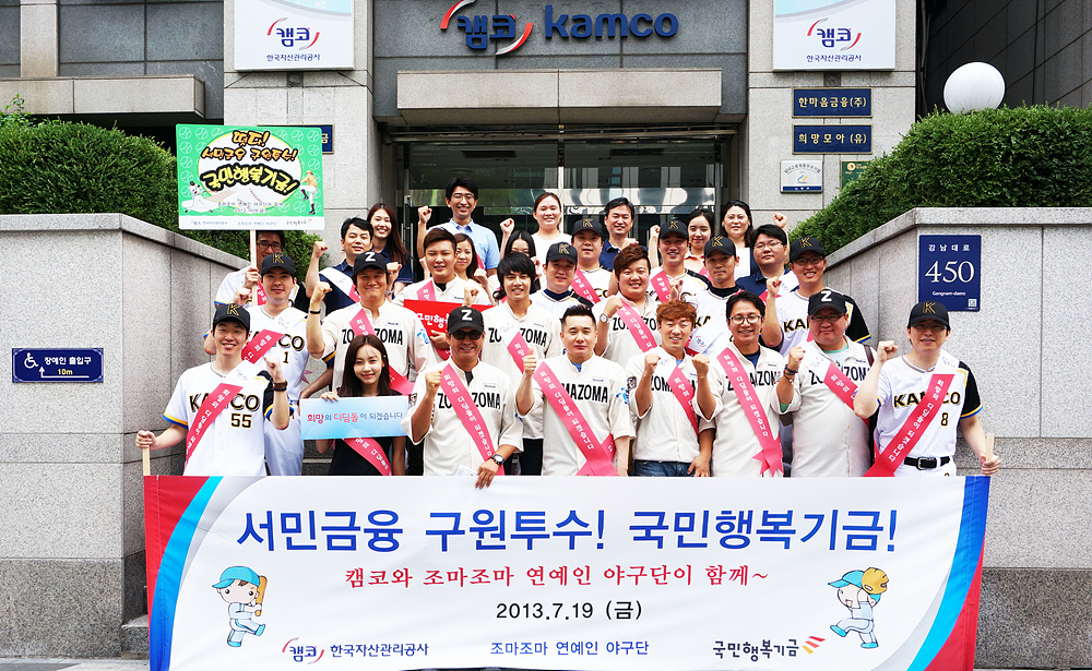 캠코(한국자산관리공사 사장 장영철)는 19일 오전 서울 강남구 역삼동에 있는 한국자산관리공사에서 연예인 야구단 ‘조마조마’와 함께 국민행복기금 홍보를 위한 길거리 가두 캠페인을 벌였습니다.