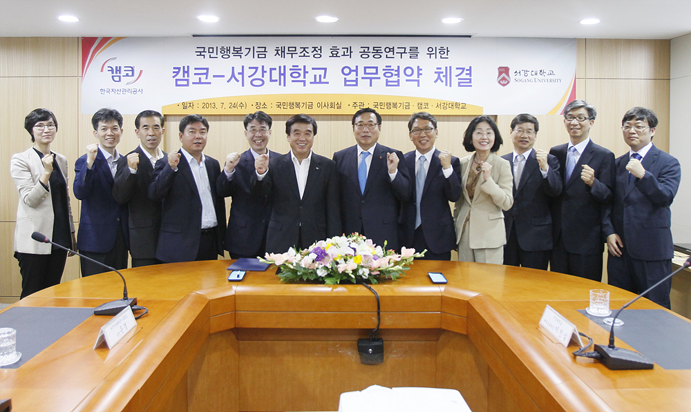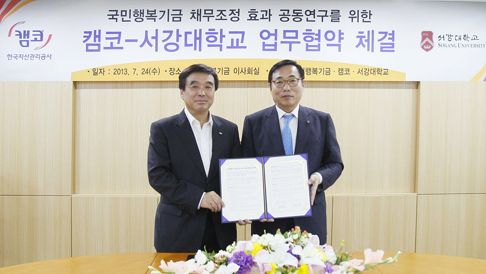 이번 협약은 국민행복기금을 운용하는 캠코와 최근 가계 금융정책 연구에 적극 나서고 있는 서강대 간 산학협력으로 이루어진 것입니다.