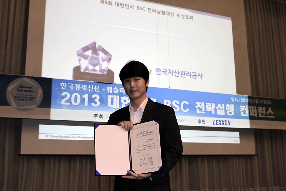 8월 27일(화) 한국경제신문에서 주관하는 2013 대한민국「BSC 전략실행 대상」에서 한국자산관리공사, 한국지역난방공사, 국립공원관리공단이 수상했습니다